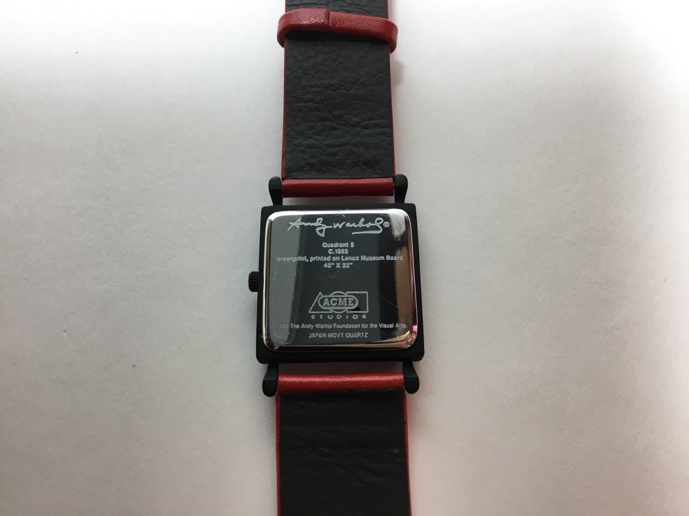 Vintage ACME Studio ANDY WARHOL “Quadrant $” Wrist Watch with Display Stand This watch was part of the very first collection of Andy Warhol licensed watches done with the Andy Warhol Foundation for the Visual Arts. Uses a red leather strap. Display stand was only supplied to retailers. Rare. Made in the 1990's The watch is currently not working. May need a new battery, but it is sold as is, no returns. About ACME Studio Started in 1985, ACME Studio is an international product design company, producing and marketing writing instruments, and other design objects. Its products are the result of cooperation with the world’s leading architects, designers, artists, foundations, estates and institutions. ACME Studio has a habit of producing limited editions and/or discontinuing products and destroying the molds – this causes items to become very unique and collectible. Check out our eBay storefront for more ACME Studio products! http://stores.ebay.com/designmafiastore/ WE COMBINE SHIPPING