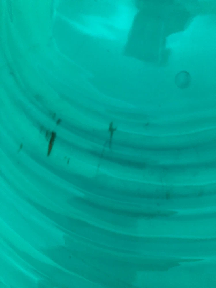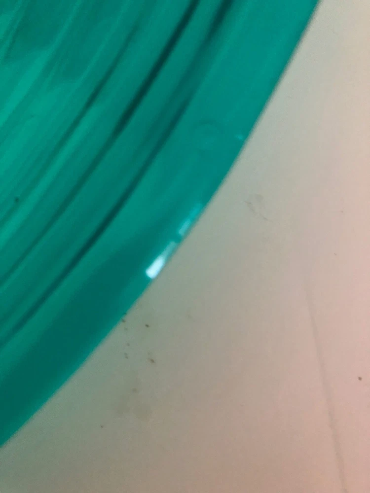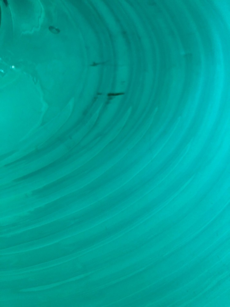 VINTAGE RIBBED ACRYLIC/LUCITE /PLASTIC SHELL CHIP AND DIP DISH VERY STURDY MORE TEAL GREEN THAN BLUE APPROX. 14 1/4" TALL - 15" AT THE WIDEST POINT UNMARKED - TRAY IS GOOD AND PRETTY BUT HAS SCRATCHES...