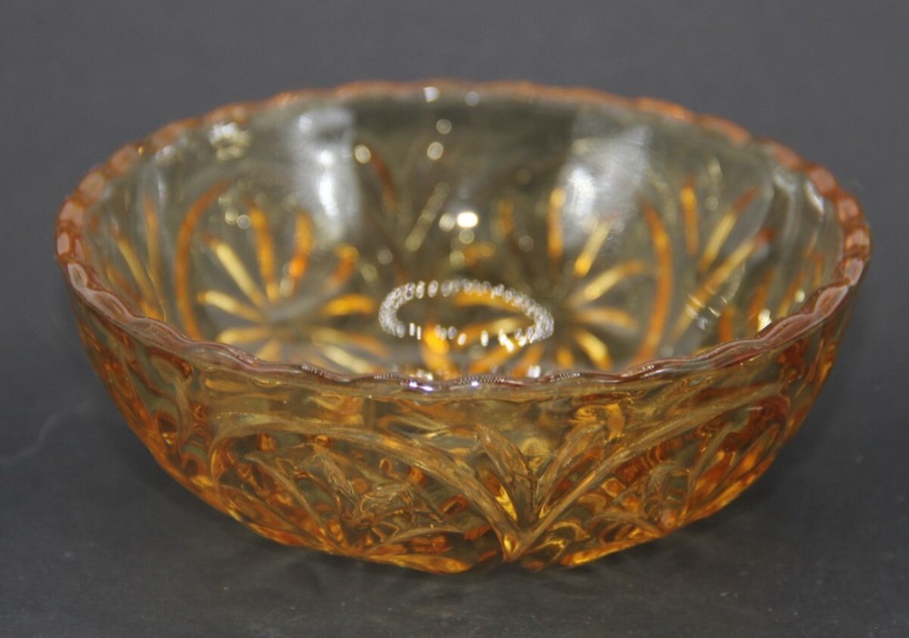 Vintage Anchor Hocking Honey Gold Dip Bowl Trinket Dish Pressed Glass.