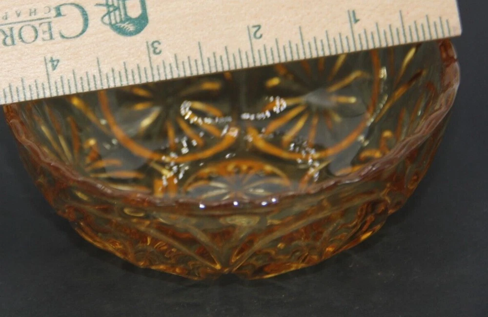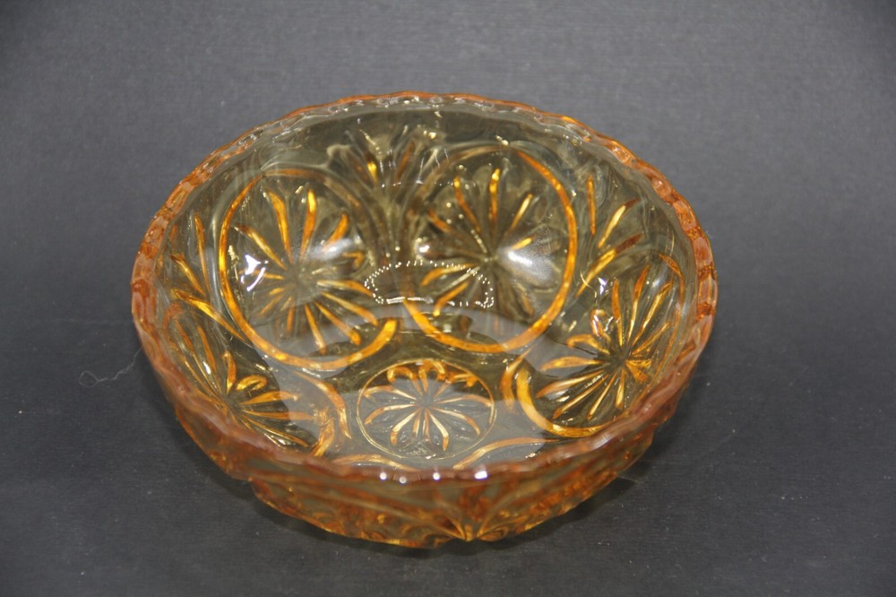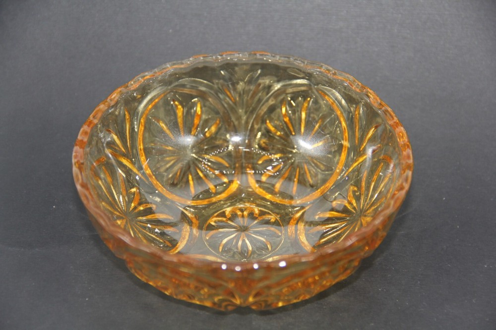 Vintage Anchor Hocking Honey Gold Dip Bowl Trinket Dish Pressed Glass....
