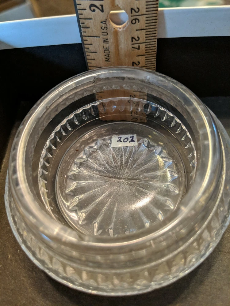 Vintage Antique Salt Dip Cellar Dish GLASS Large 2"w top 3" overall. Condition is Used. Some roughness on inner top edge from use. Nice piece. From collector's estate that had everything numbered. See pictures. OS1