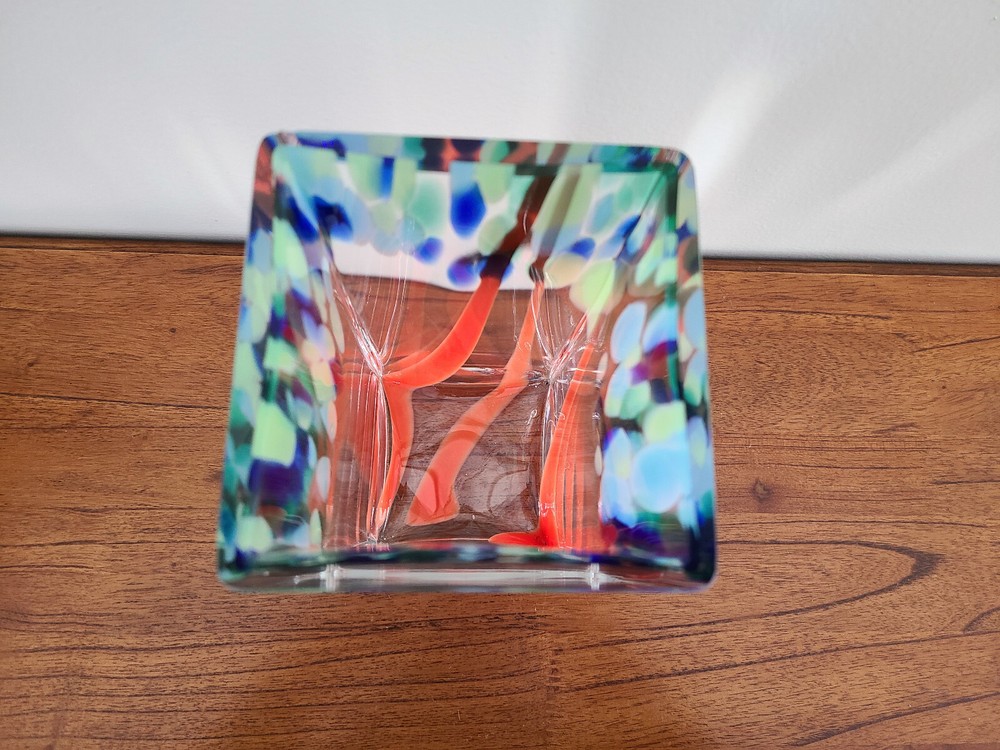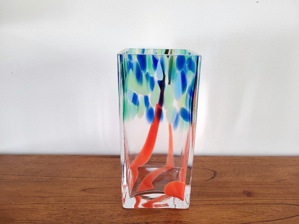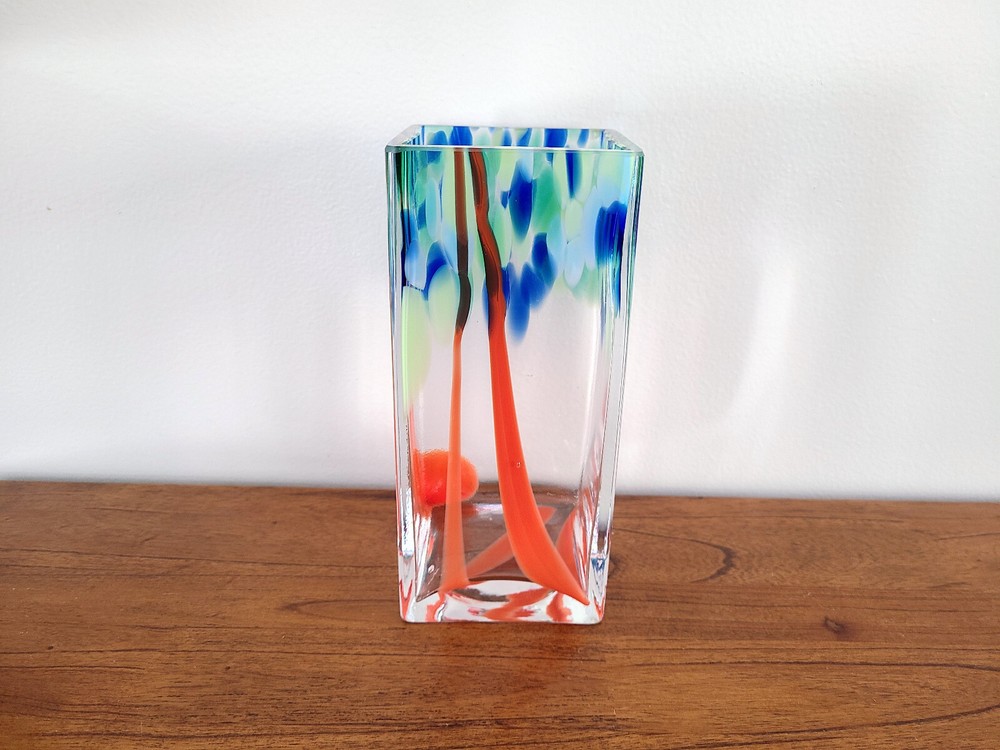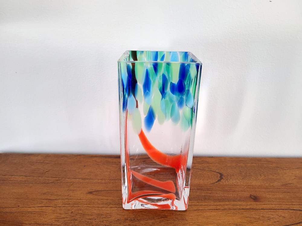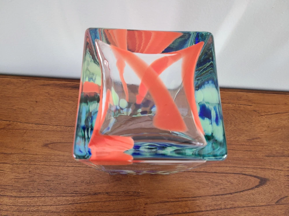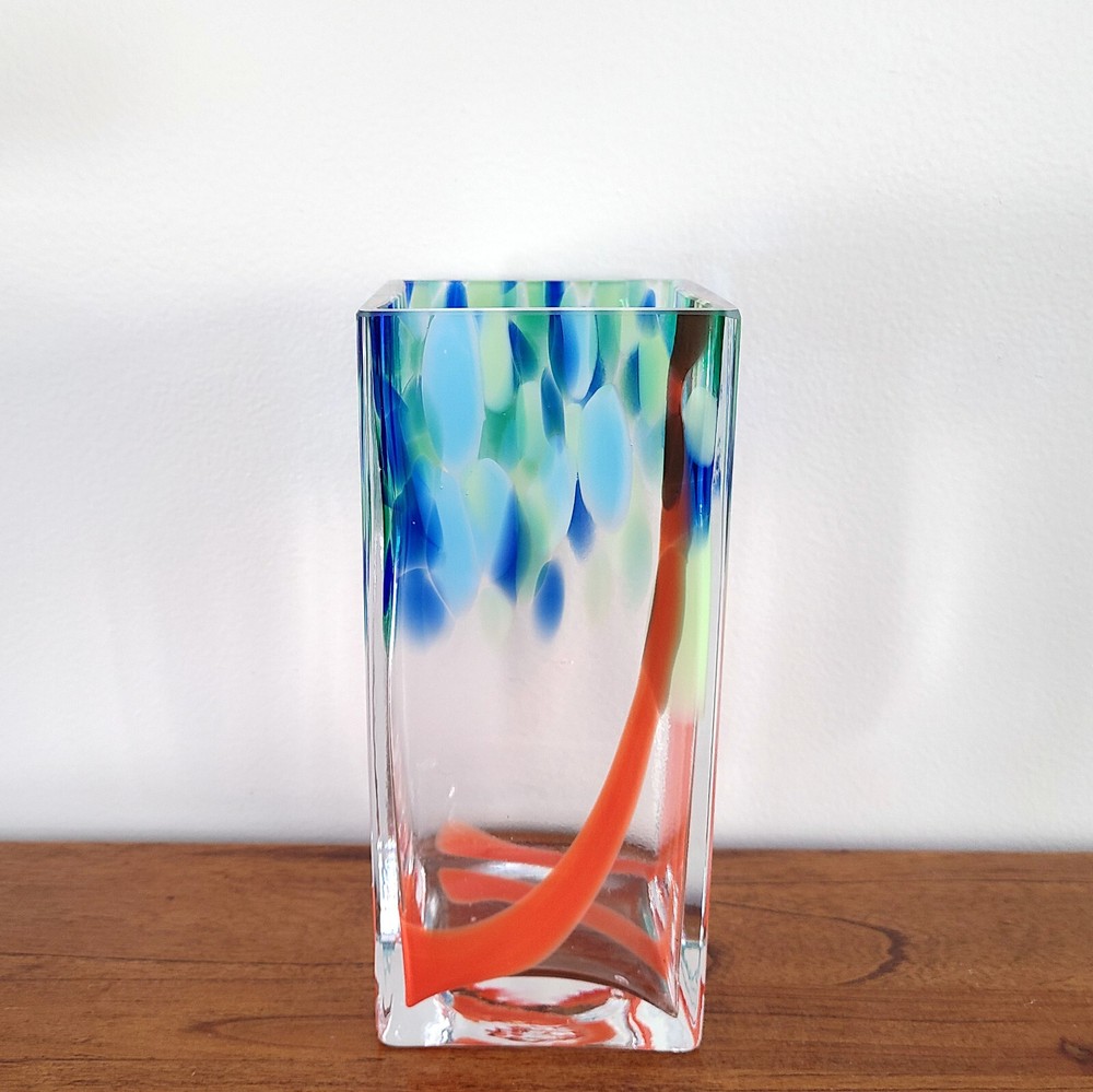 Vintage Art Glass Vase Heavy Square Art Studio 9" Tall 4" wide Measures approximately 4.12 lbs Very Good Condition. NOTE: COLOR MAY VARY Actual color may differ slightly due to various factors including the way different monitors and screens display colors or light conditions when image was taken.