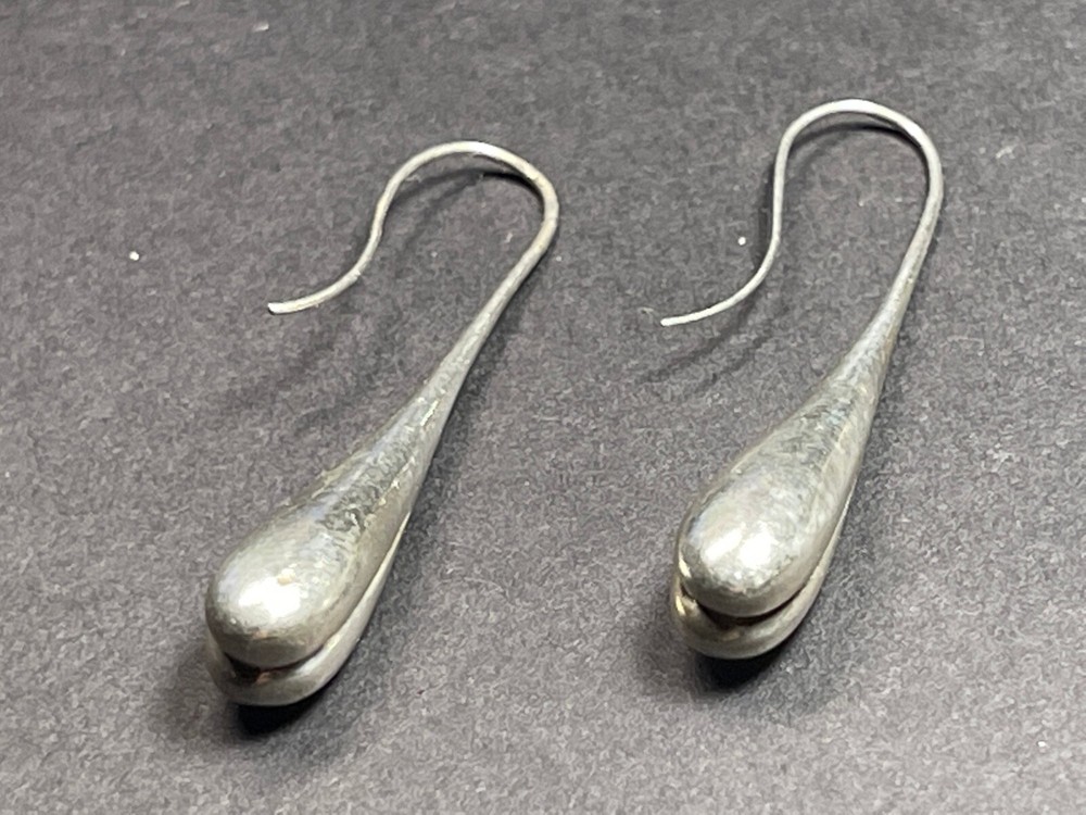 Vintage Artisan ART studio BRUTALIST Mid century Modern Drop Sterling Earrings Unmarked, tested sterling. Handmade Weight 10 Grams About The Listing Photographs are an important part of the description. Measurements & defects are shown in photos. Measurements are in inches or millimeters. Computer screens will vary in the colors they show. Gift Options Available I can send your gift to an address other than yours if you add their address into eBays' system as an alternate address. It's the only way eBay allow me to mail your gift directly for you. FREE gift wrapping & card available, just ask. Shipping & Sustainability I combine shipping when you pay for items in the same cart, purchasing them at the same time. You save on shipping when you combine you purchase items together in one cart and the environment benefits from it too! All orders are packaged and shipped with love, fully insured with tracking in sustainable & recyclable materials. If items are damaged in shipping, let me know ASAP. Don’t throw away the packaging or the item, as the shipping company reimbursement depends on proof of damage. Orders of $500 or more require signature confirmation for insurance coverage, no exceptions. Seller Guarantee I stand behind everything I sell. If you are not happy, I'm not happy. I will do everything I can to make it right. Returns accepted up to 30 days on items in unworn/unused condition, with original packaging. Items used in photo shoots are not returnable or refundable. About Me I craft one of a kind fashion pieces by hand, sell used fashion, vintage curiosities and other sustainable products. This is a micro business and how I make my living. I couldn’t do this without the support of amazing customers like you. If you're happy with your purchase please leave positive feedback. You make a difference! Still have any questions? Contact me, I'm happy to help.