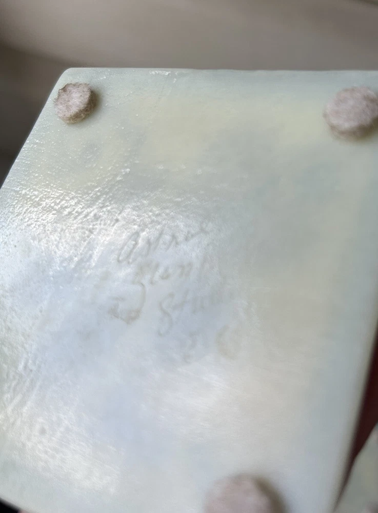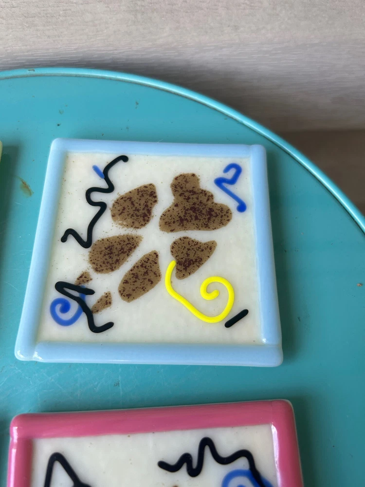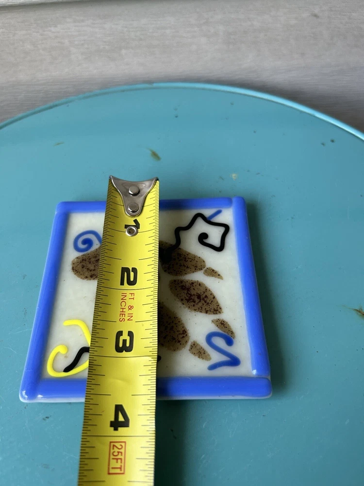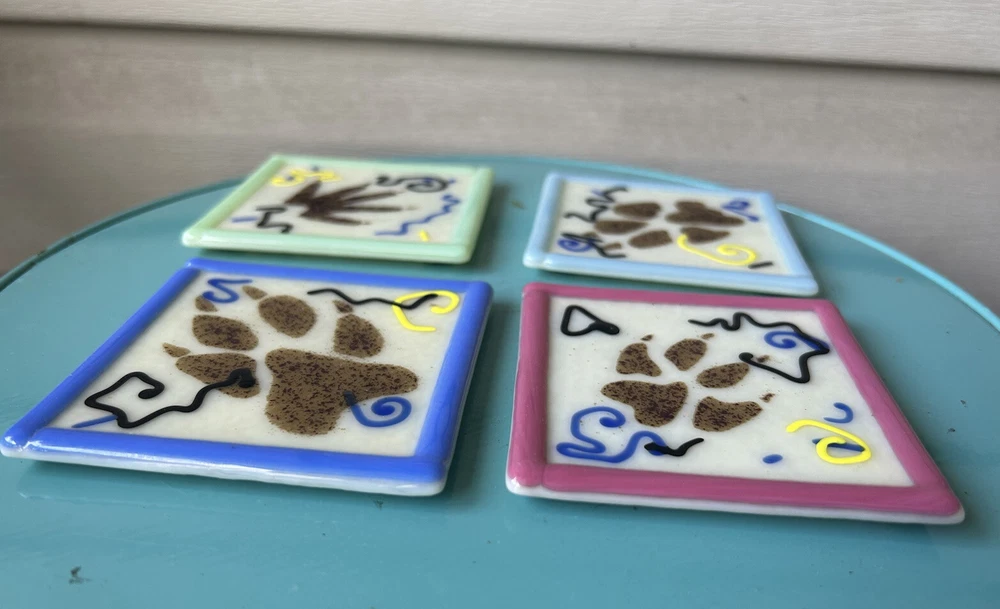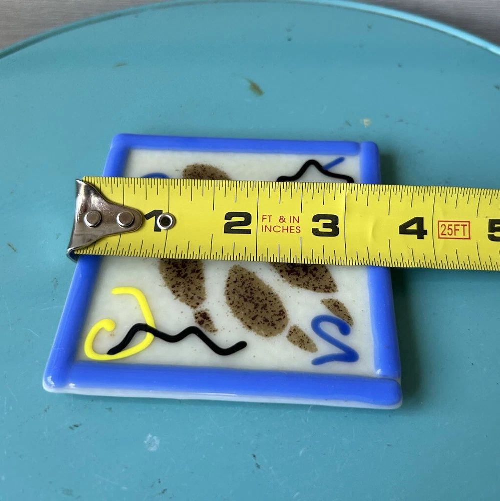 Vintage 1998 Astral Glass Studio Abstract Fused Glass Coasters-Set of 4. Approx. 3 1/2”x 3 1/2”. Each signed Astral Glass Studio on the back. No apparent chips or cracks. Some light scratches as commo...
