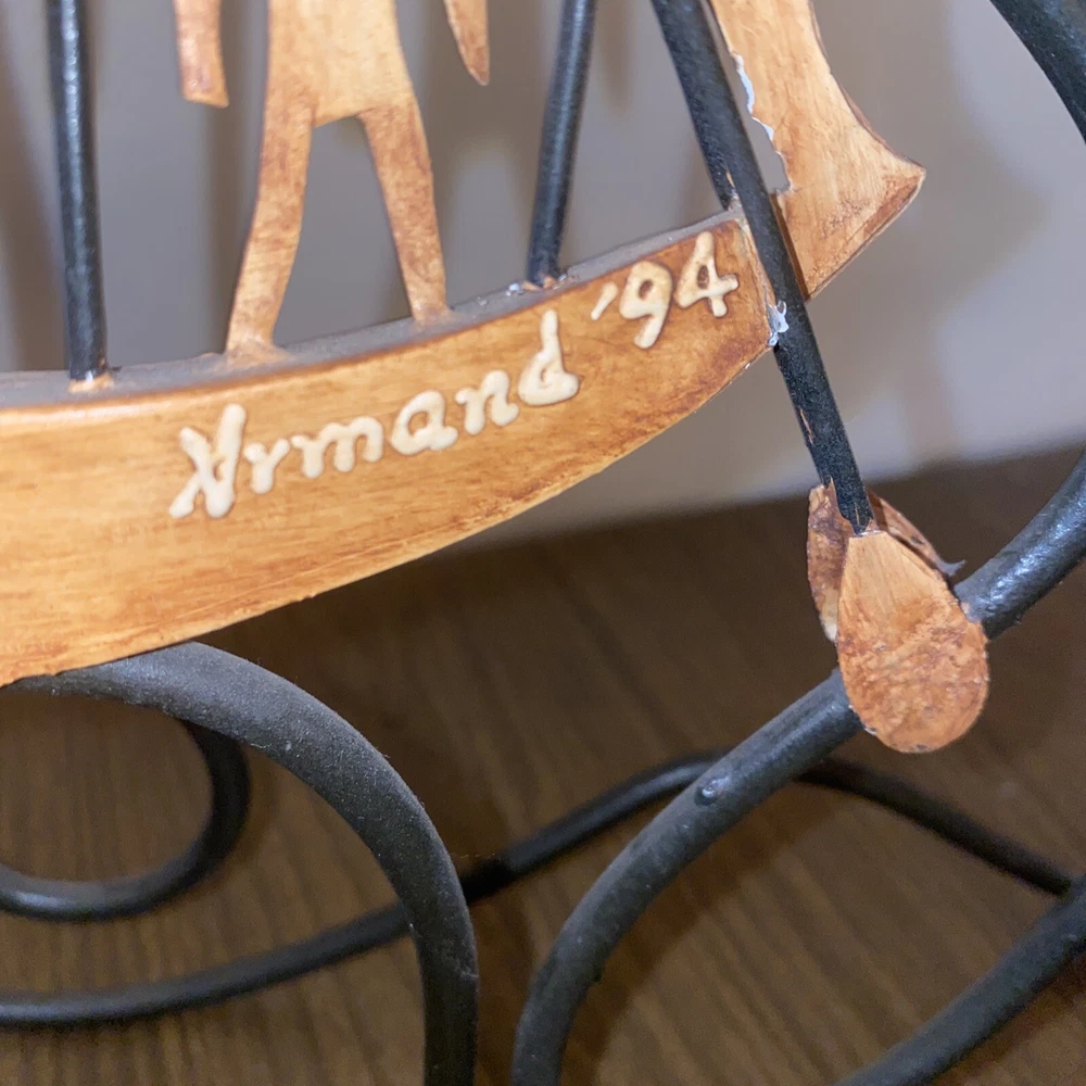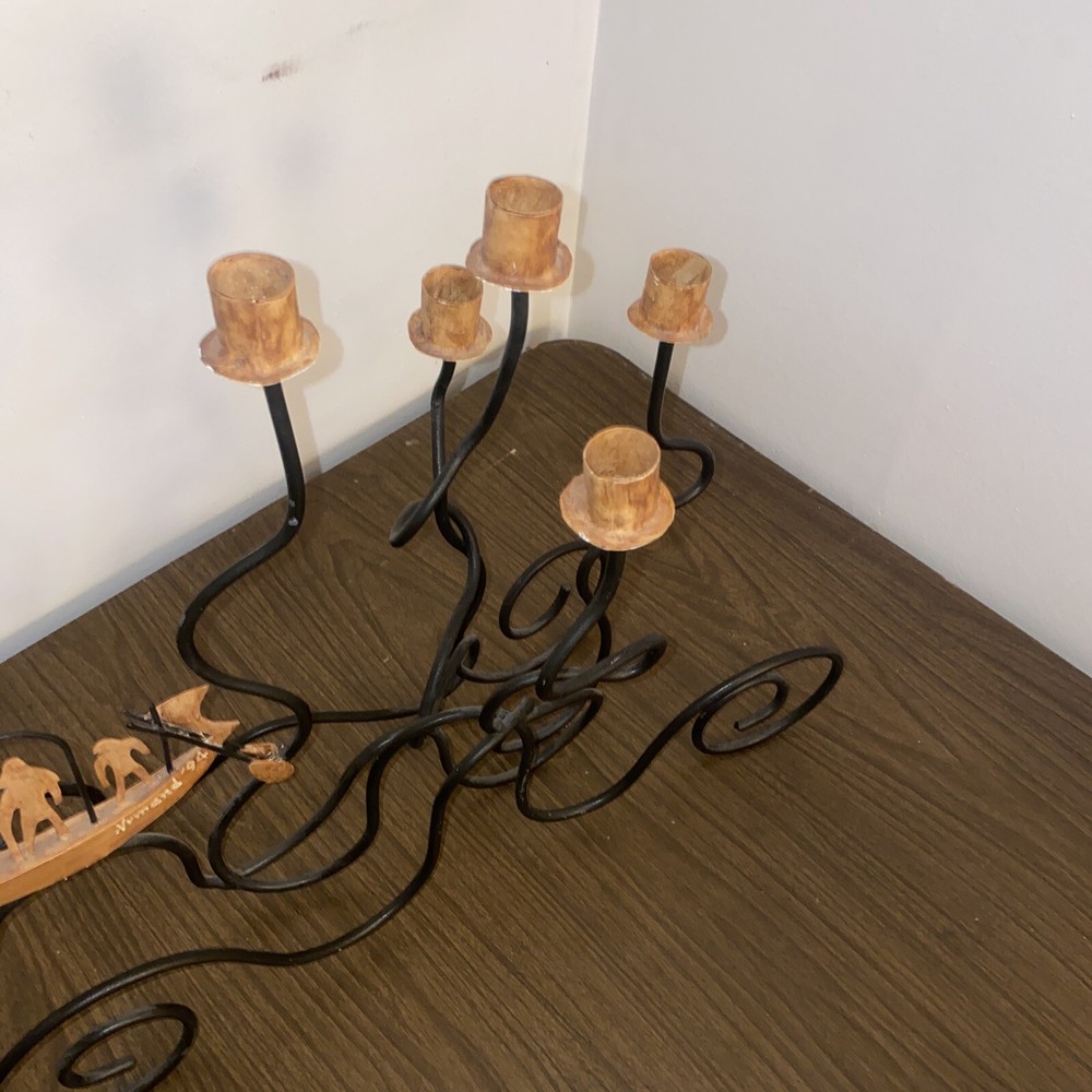 This vintage candlestick holder is a stunning addition to any collection. Made of wrought iron, it features a beautiful black and brown color scheme that adds a touch of elegance to any room. With the ability to hold up to 5 candles, this piece is perfect for creating a warm and inviting atmosphere in your home. The mid-90s signature adds a touch of authenticity to this vintage original. Perfect for collectors or those looking to add a touch of vintage charm to their home decor.