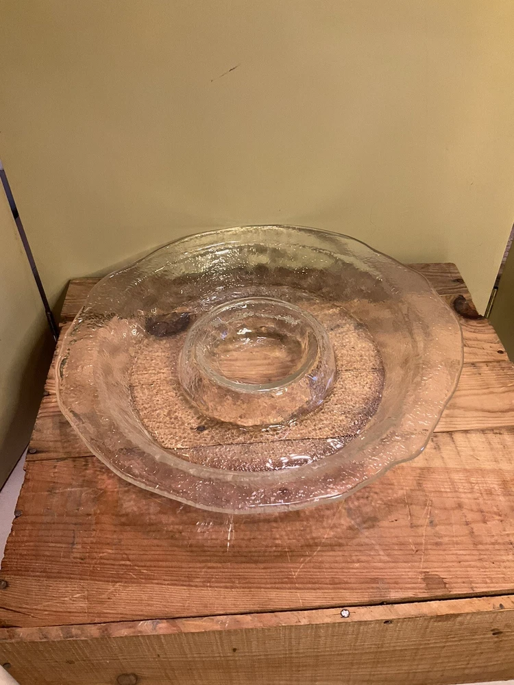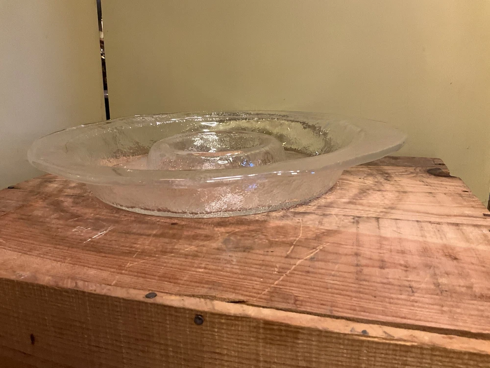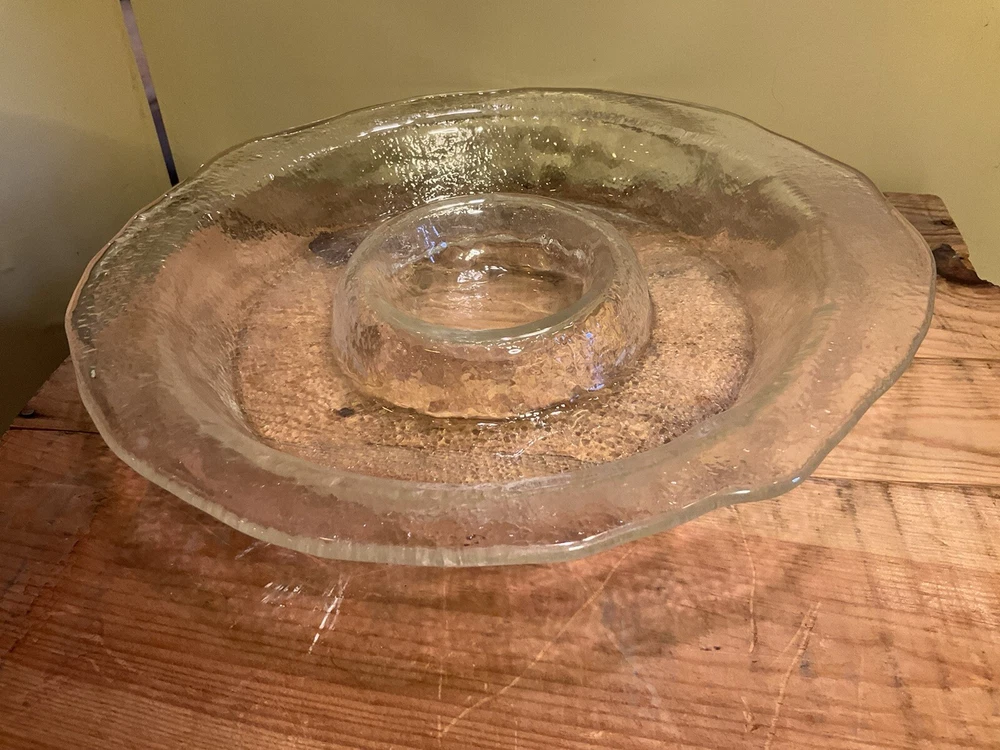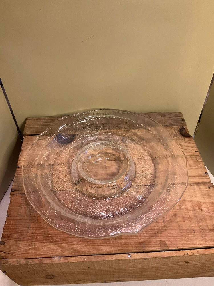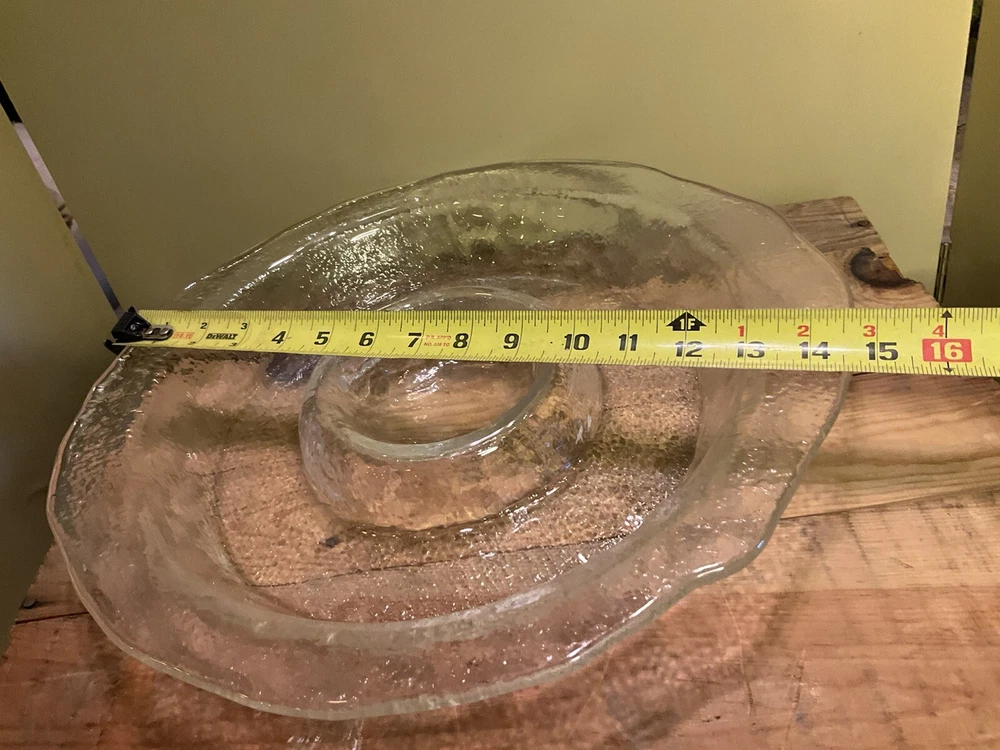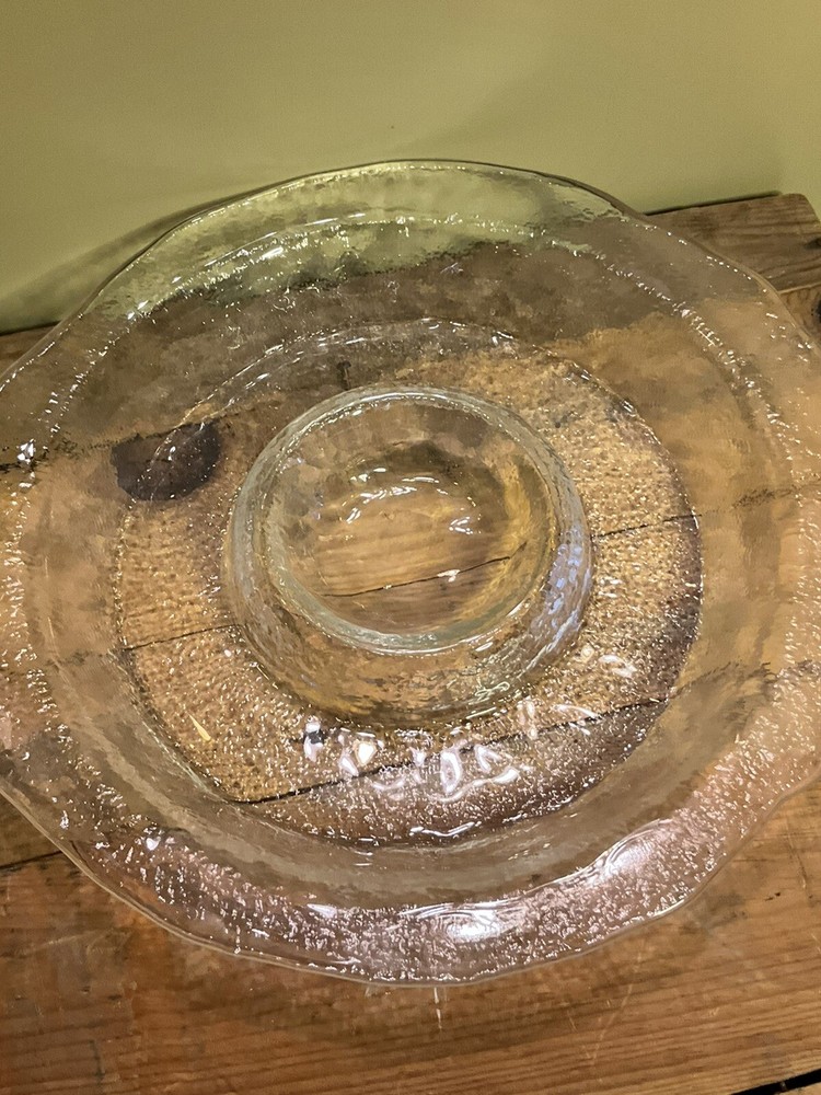 Vintage Centerpiece Blown Glass Chip & Dip Bowl Abstract Shape 15". Approximate dimensions: 2” x 15” Gorgeous large entertaining dish/ display bowl Perfect for hosting guest Made in the USA Condition Pre- owned wear is consistent with vintage age. Please refer to pictures to determine condition. If you have any questions let me know. Most Item(s) are vintage and some are antique so they do show signs of wear. Please refer to pictures for condition. **Shipping My goal is to get your item to you as fast as possible. I do my best to select the fastest shipper in price range of shipping. If you want a package expedited please contact me and we can arrange the additional shipping expense for you. As per my reviews our buyers are very happy with how fast their packages arrive. All International buyers pay additional shipping costs. Fast Shipping! A7