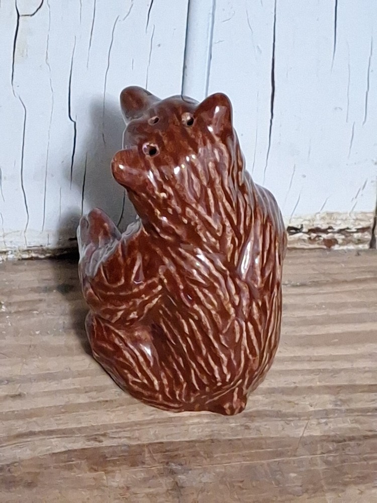 Spice up your kitchen with this adorable vintage ceramic Mama Bear salt or pepper shaker. Handmade by Ceramic Arts Studio in Japan during the 1970s, this medium-sized shaker features a fur-like texting pattern and a brown color that complements any decor. The shaker is designed in the shape of a bear, with a nesting feature that adds a touch of whimsy to your table setting. Nesting with the baby bear that's missing. This unique pepper shaker is perfect for all occasions and is a great addition to any collection. It comes with a set that includes one shaker and is an original piece. Add some art to your kitchen with this charming ceramic piece. And it's in very good condition, just missing the plug. Please see the photos they are the description. Please see my feedback. Item ships the same or the next day upon payment. Thank you for looking URB