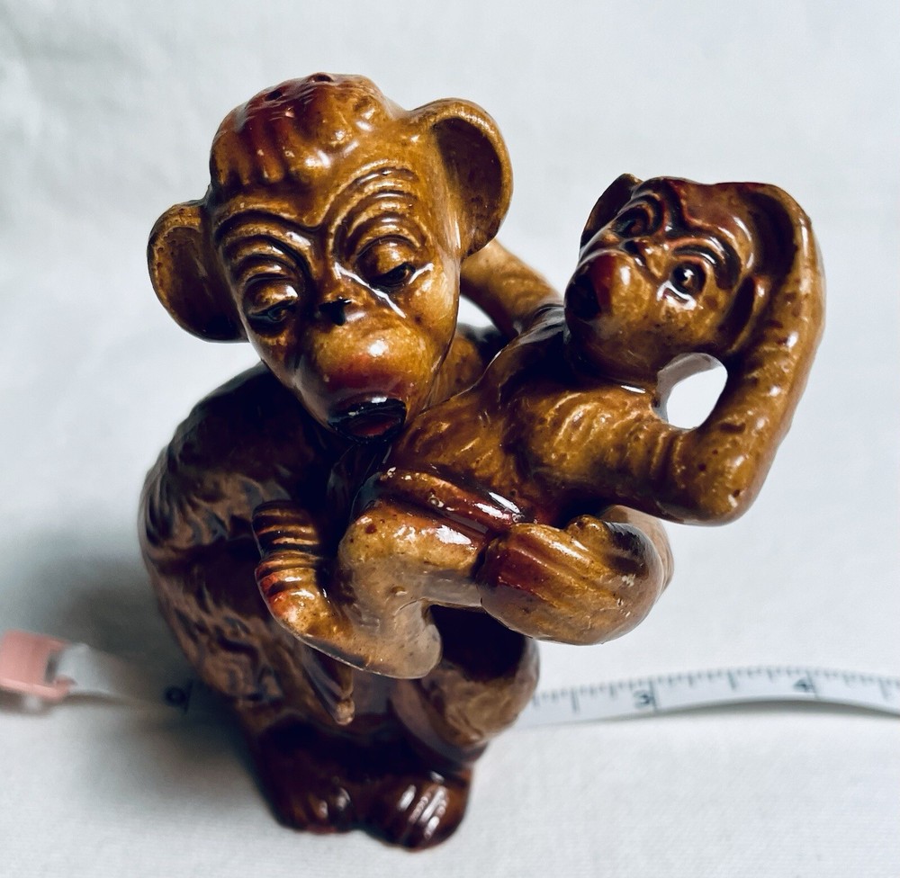 🔹 Item(s) Description: Vintage 1950's Ceramic Arts Studio Nesting Mother & Baby Monkey/Gorilla Salt & Pepper Shakers. Original Cork Stoppers, Marked Japan on bottom. Measurements are listed in Item Specifics. 🔹 ITEM(S) CONDITION: Very Good Vintage Pre-Owned - there are a couple paint rubs on the back of Mom's head as shown in photos. 🔹 BUSINESS POLICIES: 🔹 RETURNS/REFUNDS: We do not accept returns or offer refunds. 🔹 We ship during the business week according to eBay’s Guidelines. We usually cannot ship earlier due to our work schedules. 🔹 We Ship Internationally through eBay’s International Shipping Program 🔹 ABOUT US: ❤️ Please Add Our Store:The Mellow Pug Vintageto Your FAVORITES List! 🔹 Purchase With Confidence! We have years of selling experience (Our other store has had almost 6,000 Sales) and always strive to maintain excellent Customer Service.