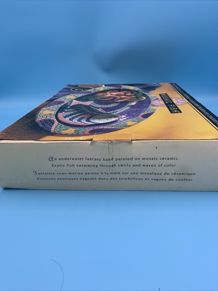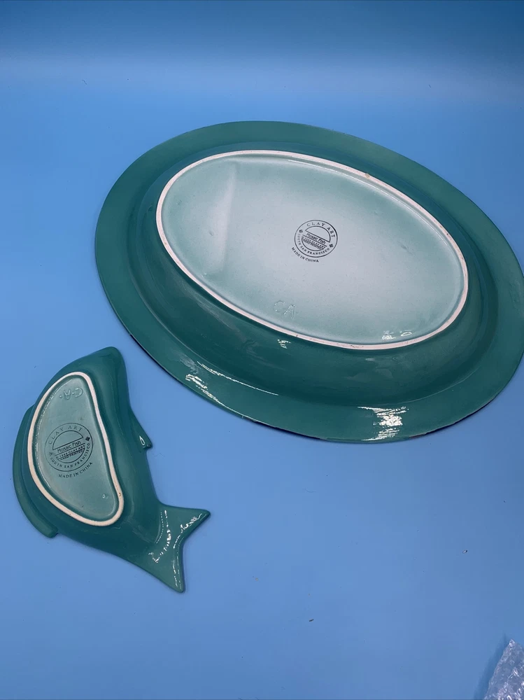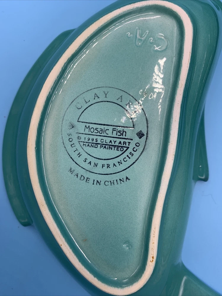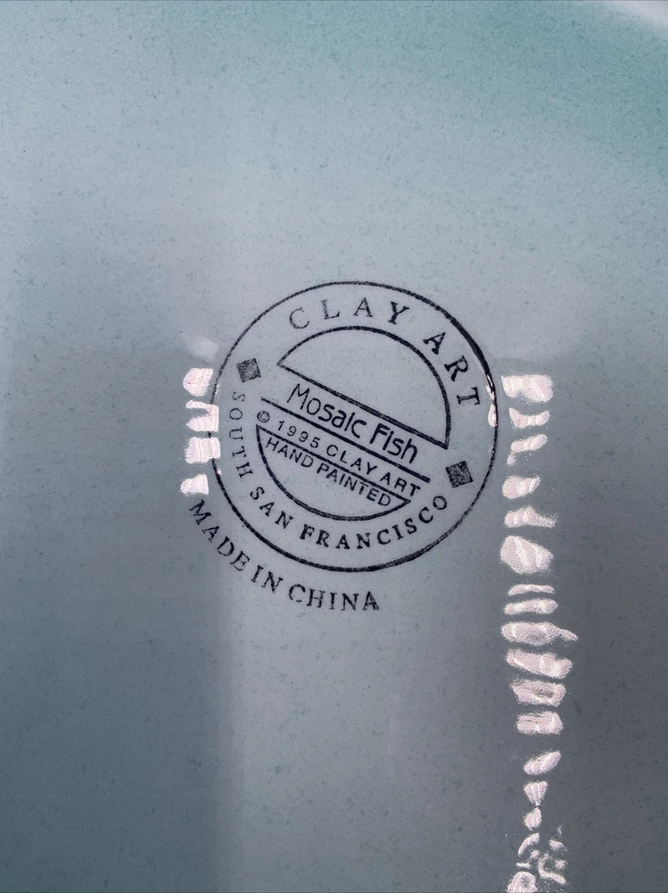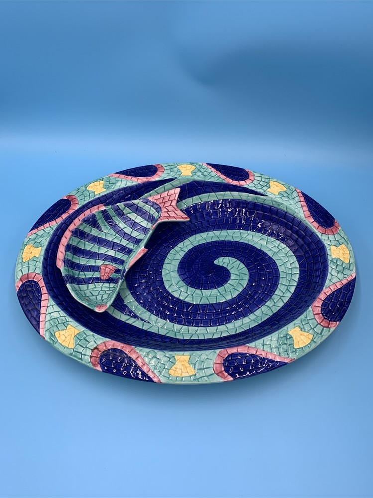 Vintage Clay Art 1995 Mosaic Fish Hand Painted Chip & Dip Set..