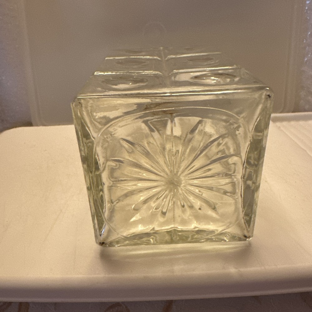This mid-century cube decanter is a stunning retro gem! The 10" clear glass design is sleek and unique, perfect for displaying your finest whiskey or as a chic bar accent. The cube shape makes it a real conversation piece, and the included stopper keeps drinks fresh. Love the unmarked, studio-crafted look—pure vintage charm! A must-have for collectors of 60s barware.
