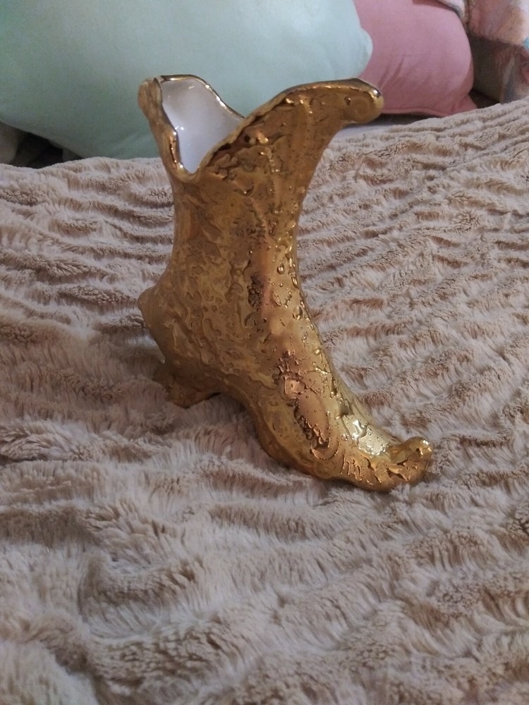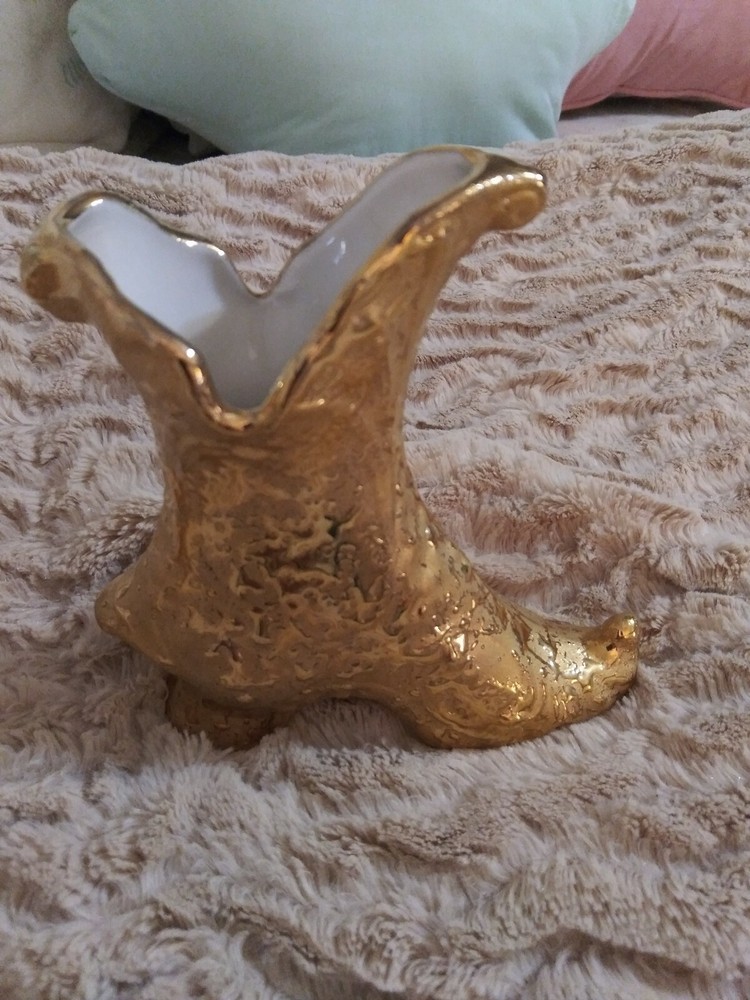 Vintage DREAM ART STUDIO 22 kt WEEPING GOLD Victorian Boot/Shoe Vase. 4" x 5".Condition is Used. Shipped with USPS Priority Mail.