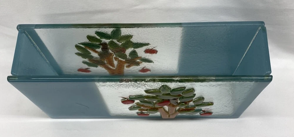 Get this unique Vintage Fused Glass Colorful Studio Art Napkin Holder: Apple Tree Art. I was unable to find another one like this! In excellent used condition, no chips or cracks.