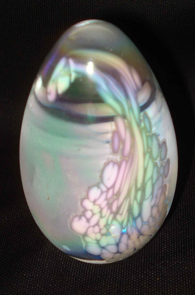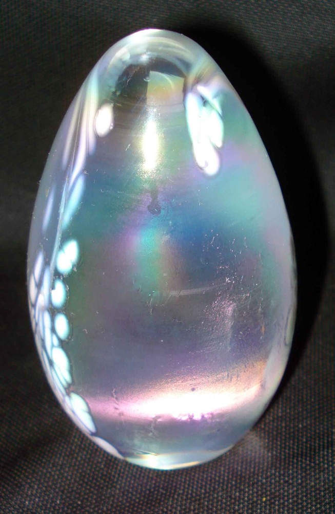 Up for sale is this nice egg-shaped paperweight. It is unmarked unless it is marked under the sticker from where it was sold in a store. I think it was made by Glass Eye Studio but am not sure. It measures 3 ¾” tall and is done in a white iridescent glass. It is in great condition with no chips, cracks, repairs, or damage. This is a nice piece. Please view my other auctions for more treasures from local estate auctions and garage/yard sales! Happy Bidding and please email me with any questions prior to bidding. All measurements are approximate. Shipping is determined by weight. If the price seems high, please email me to check on the cost. I will work with the buyer to ship the cheapest route whether it is USPS Ground Advantage or UPS (where possible). Also, the price quoted from eBay will be for Priority mail or USPS Ground Advantage depending on the weight. If the package is oversized or cost more to ship than was quoted, it is at my discretion to send USPS Ground Advantage or UPS. I do not send overseas unless it is covered and sent through the global shipping program. All packages are insured to protect against damage and will come with tracking. I do combine on shipping when possible. All items that sell for $250.00 or more will have signature confirmation.