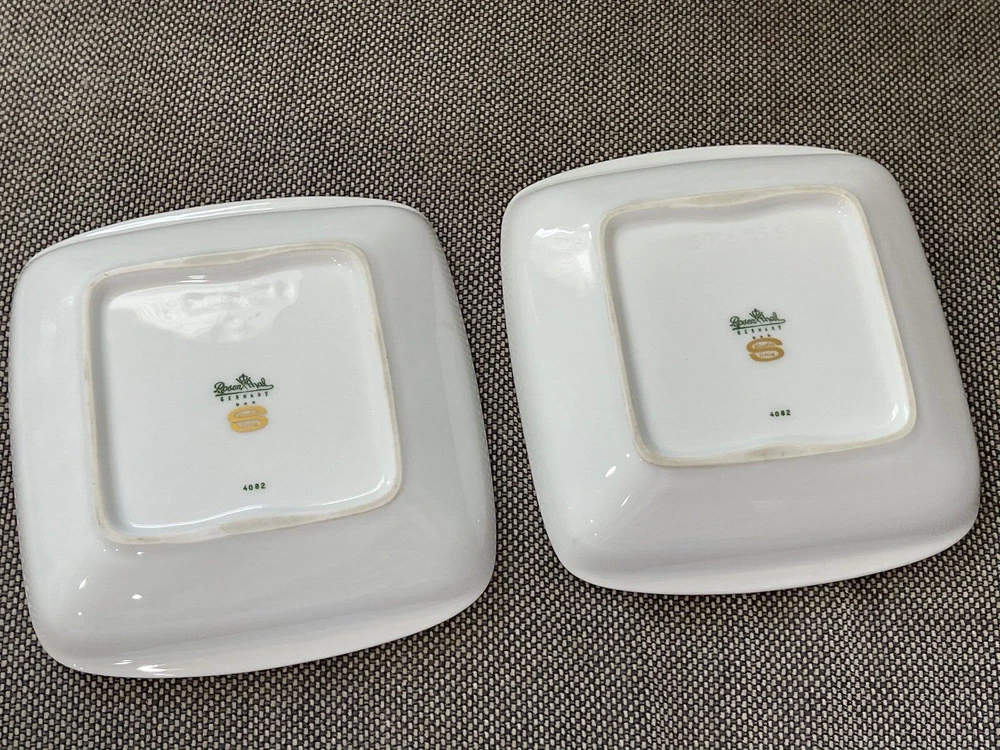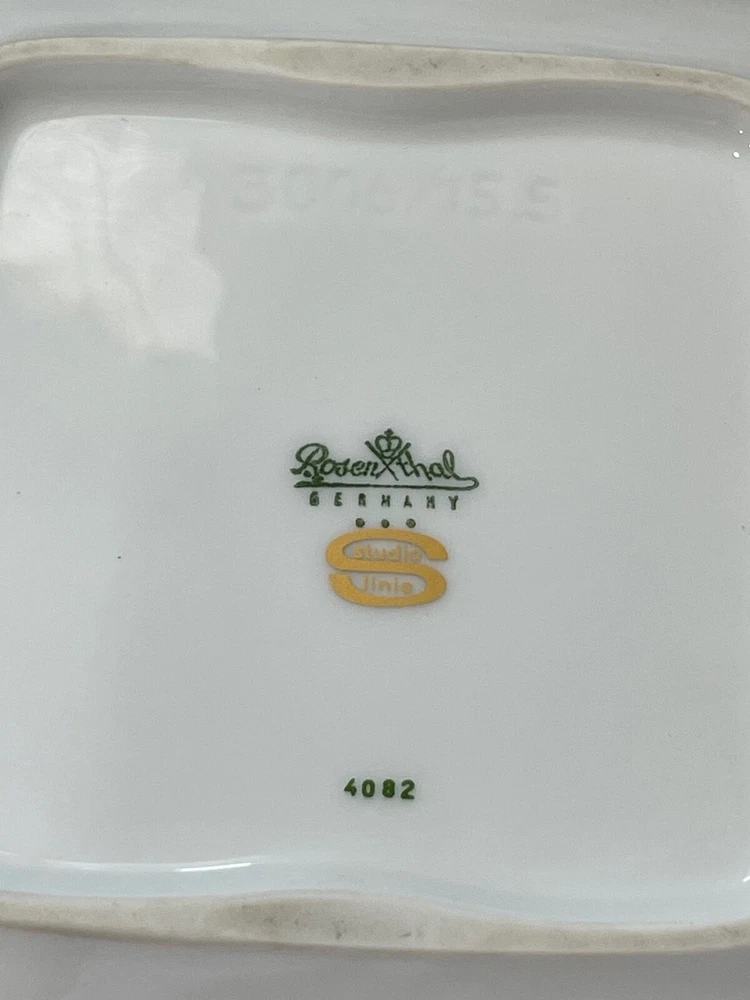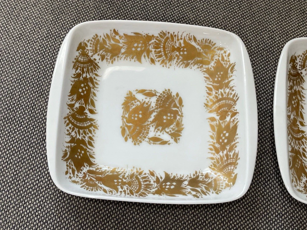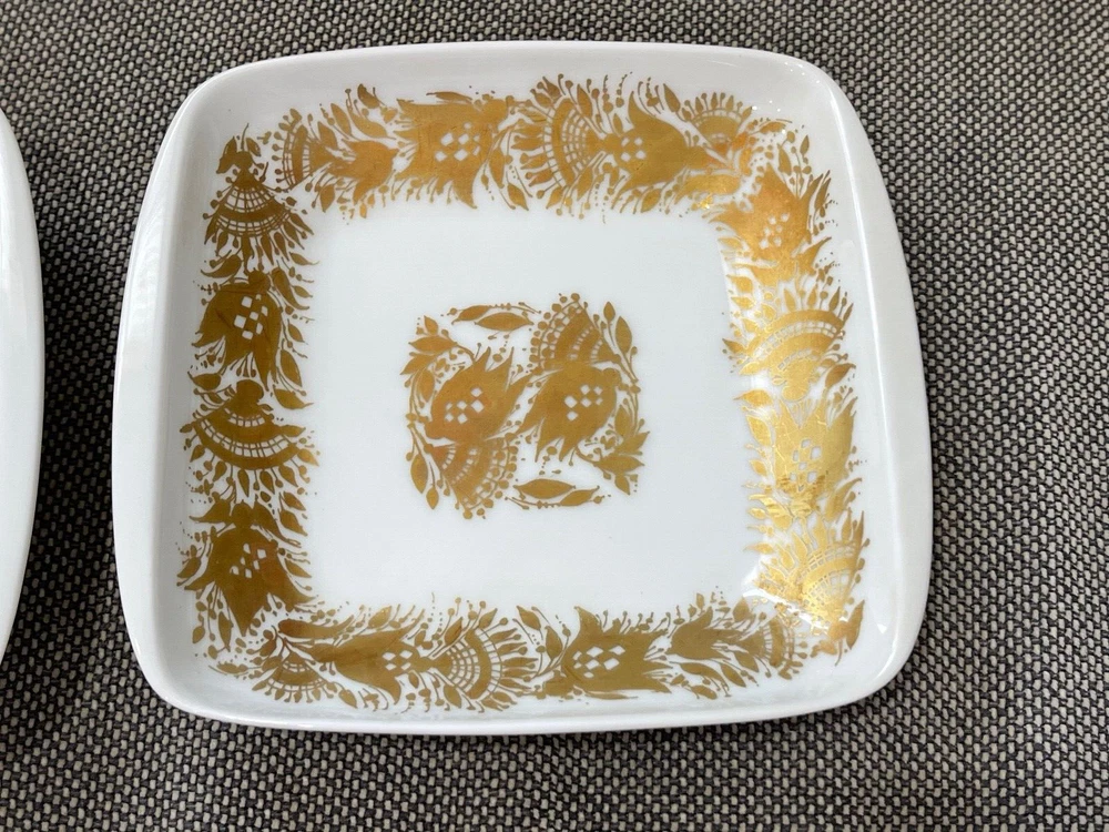 This is a nice vintage German Rosenthal Studio Linie Line porcelain pair of square ashtrays with gold decoration. In pretty good condition as the pics show with no nicks or chips but has some minor wear to the decoration and they come exactly as shown. They measure 6 1/8" x 5 3/4" Keep in mind the shipping price also covers handling fees, packaging materials & time, not just postage. Shipping Calculator is often wrong please contact me for an accurate international shipping price. See our eBay store for thousands of our other items. A17