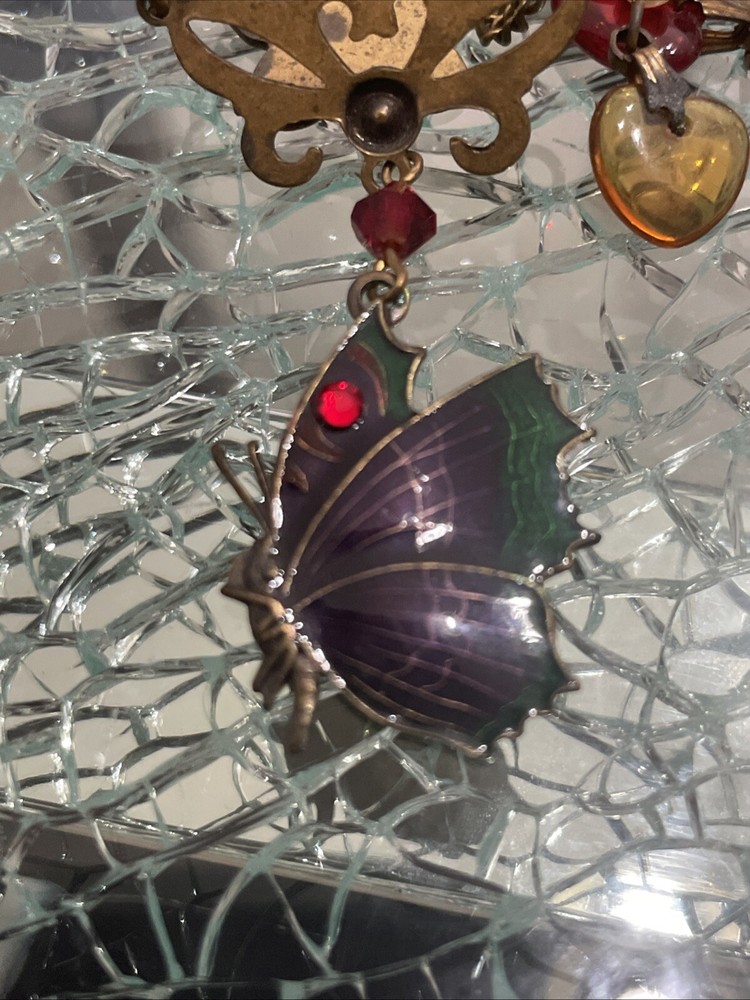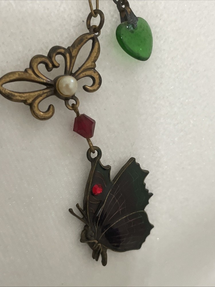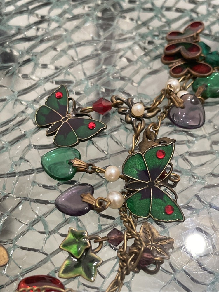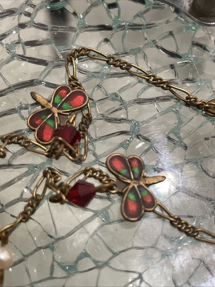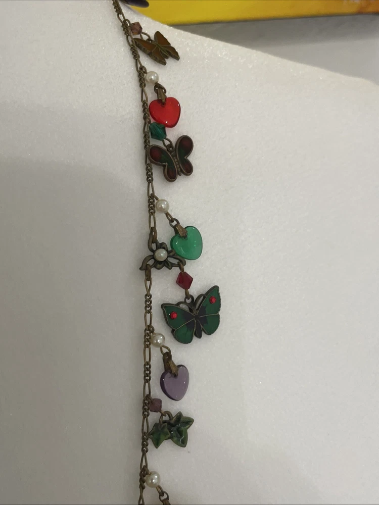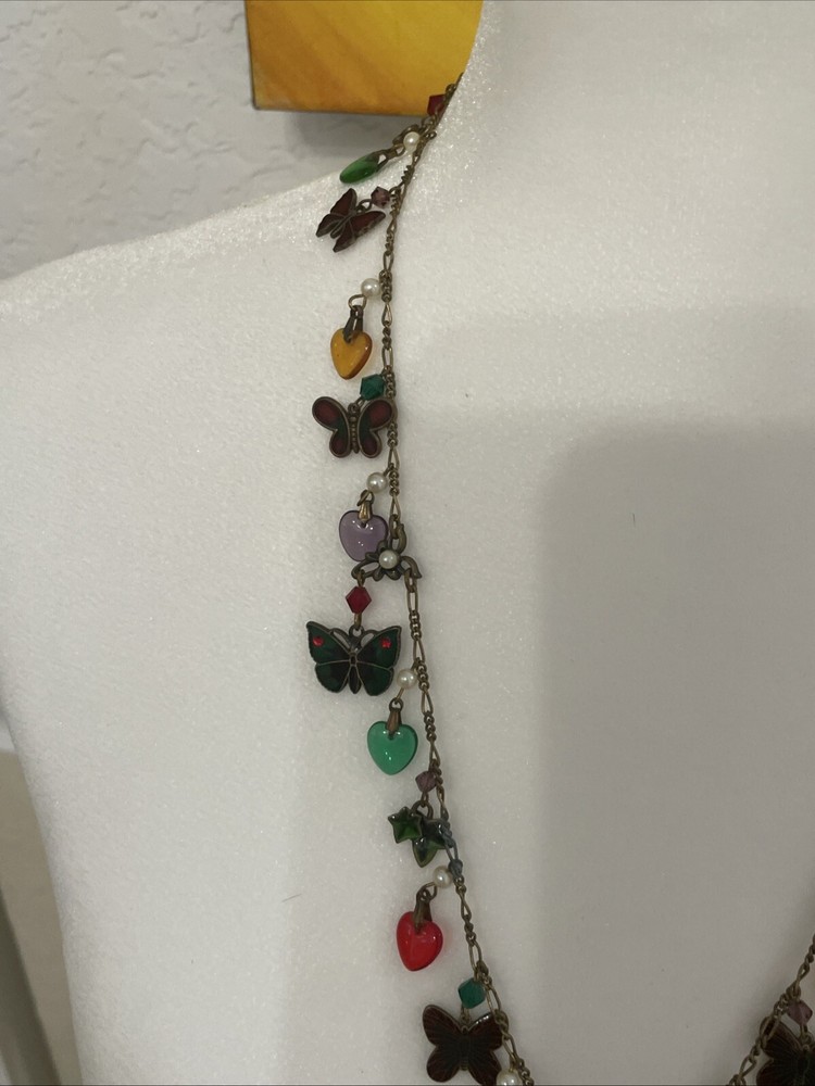 Vintage Glass Works Studio Necklace Hearts, And Butterflies Signed Authentic Figaro style necklace 13 inches in length enamel Cloisonne...
