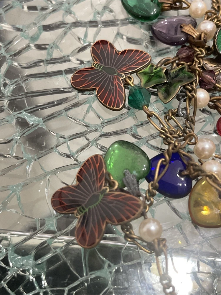 Vintage Glass Works Studio Necklace Hearts, And Butterflies Signed Authentic Figaro style necklace 13 inches in length enamel Cloisonne
