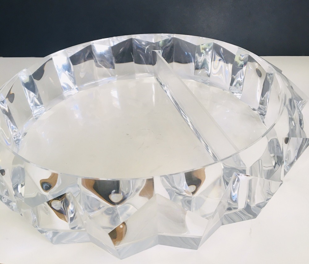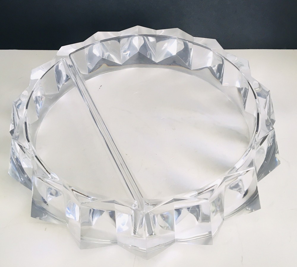 - This is a vintage pre-owned item in good condition. - Approx. measurements: 11.5" diameter and 3.25" height - Divided dish with 2 compartments. - Showing light use that I was unable to photograph. Some light scratches from washing. - Please see all photos as they are part of the description. BDR-2 inventory