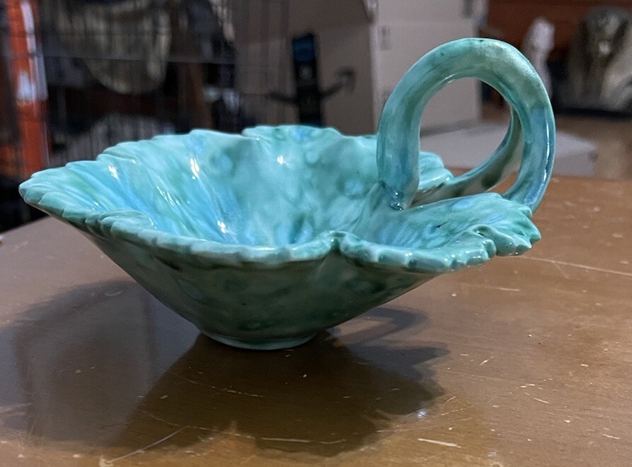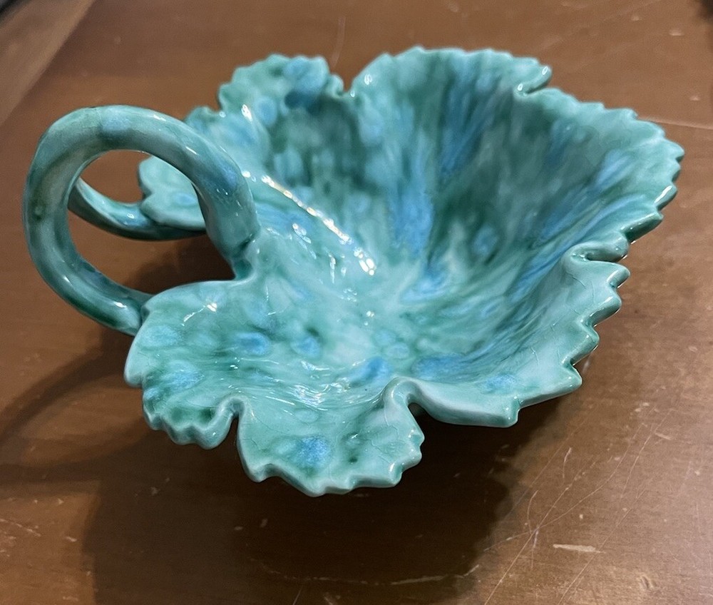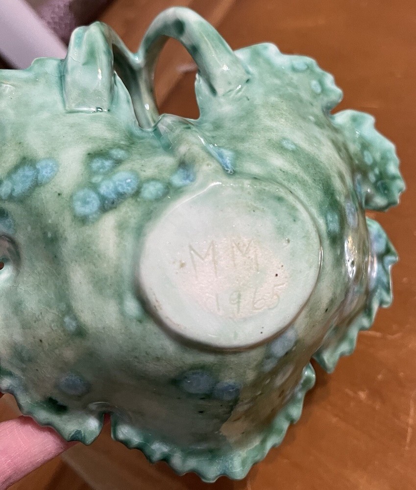 Vintage Green Glazed Leaf Shaped Studio Pottery Dish Bowl 1965 MM. Condition is Used. Shipped with USPS Priority Mail.