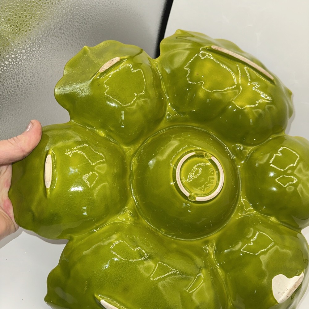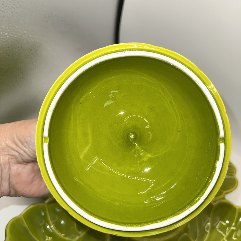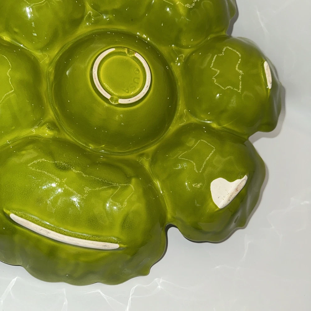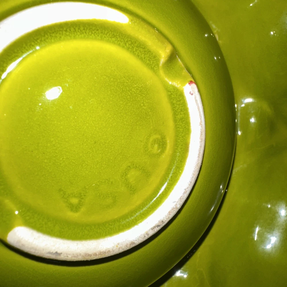 Green great shape the bottom that shows white isn’t a chip it’s smooth I think they forgot to paint. Is marked USA on bottom tried to to best with pic...