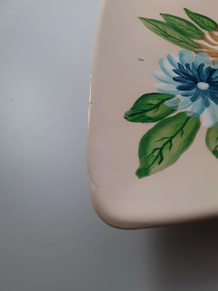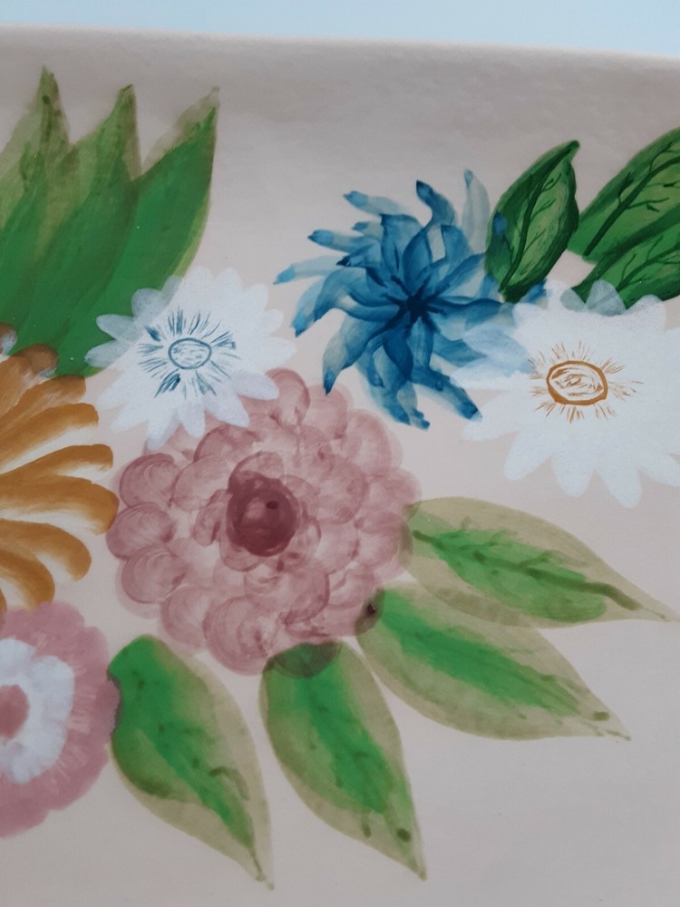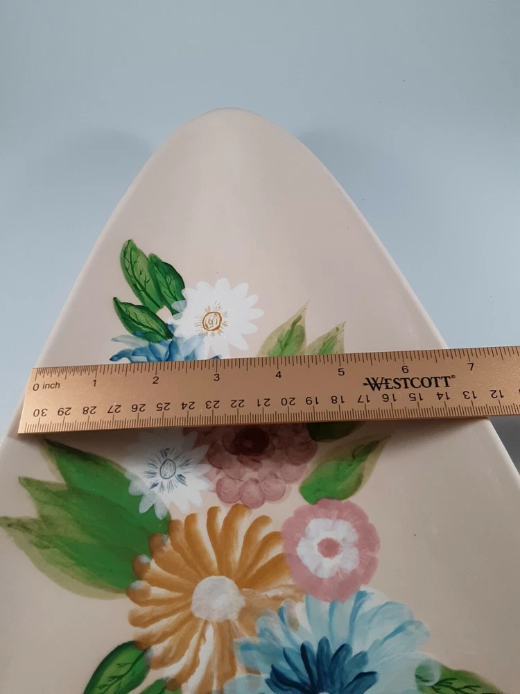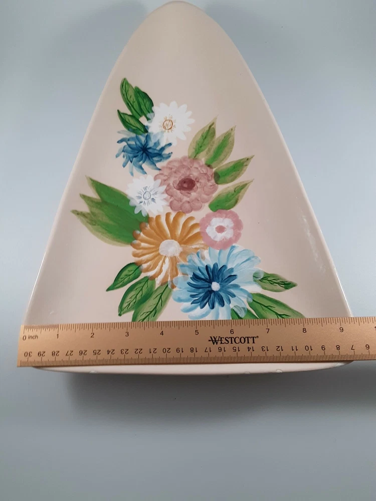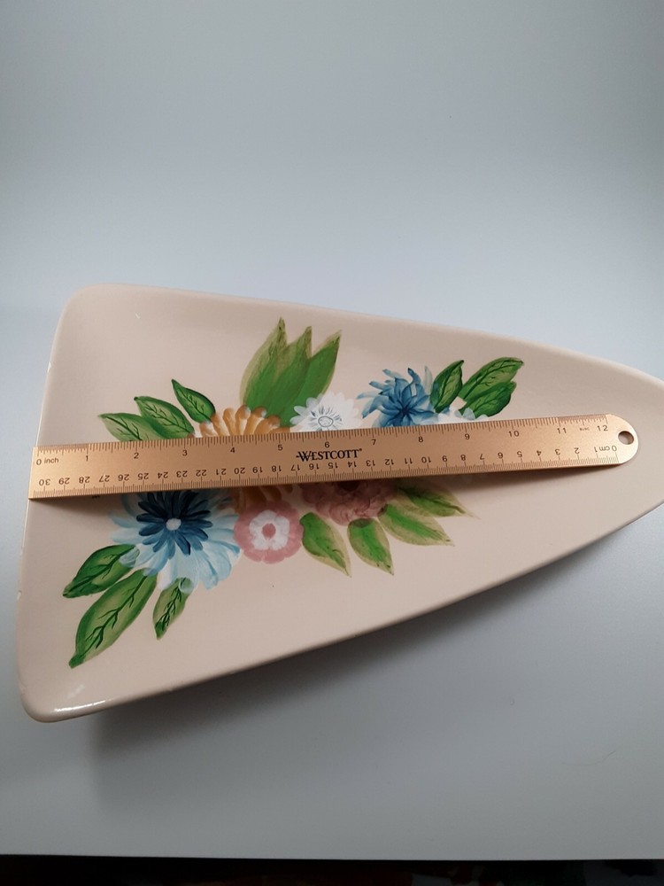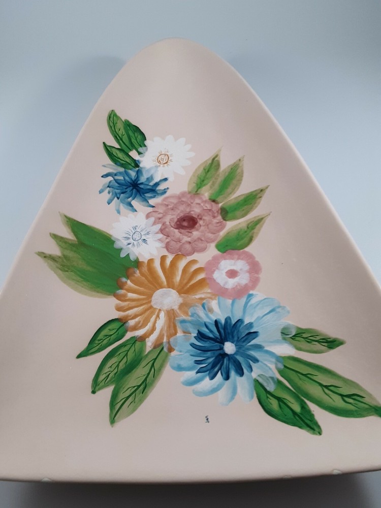 Vintage Hand Painted Handmade Studio Art Triangle Shaped Trinket Dish Signed .. Condition is pre-owned and signed by the Artist. This beautiful tray does have one or two places where the paint is chipping off. Please see pictures for more details, but overall this piece still has a good many years to be enjoyed by someone. Signed by Jan 1979.