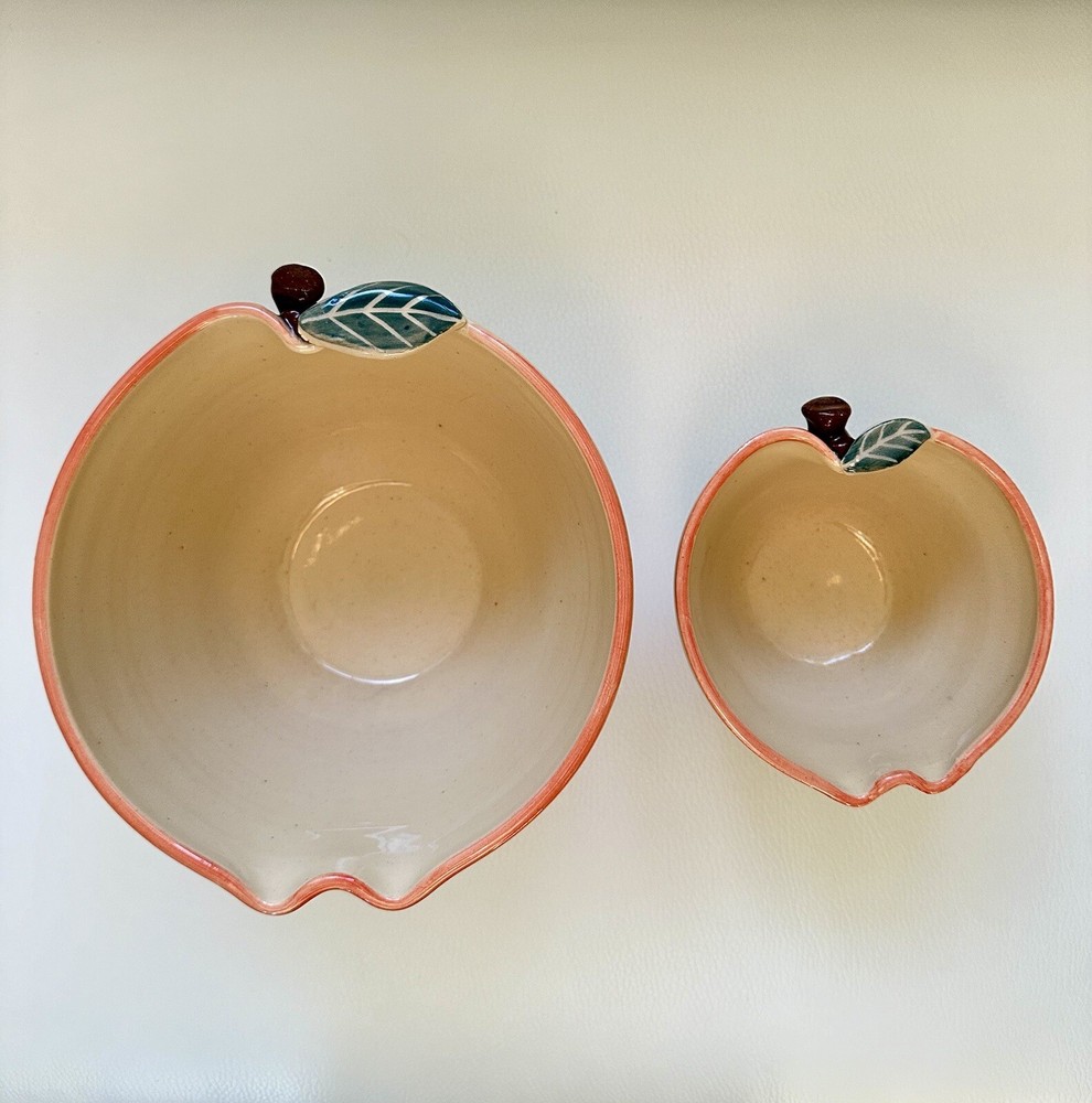 Vintage Kovack Pottery MK Apple Bowls 1994 from the Seagrove Pottery in North Carolina. Set of 2. Large apple bowl is 4.5"H x 8"W Smaller apple bowl is 3"H x 5"W