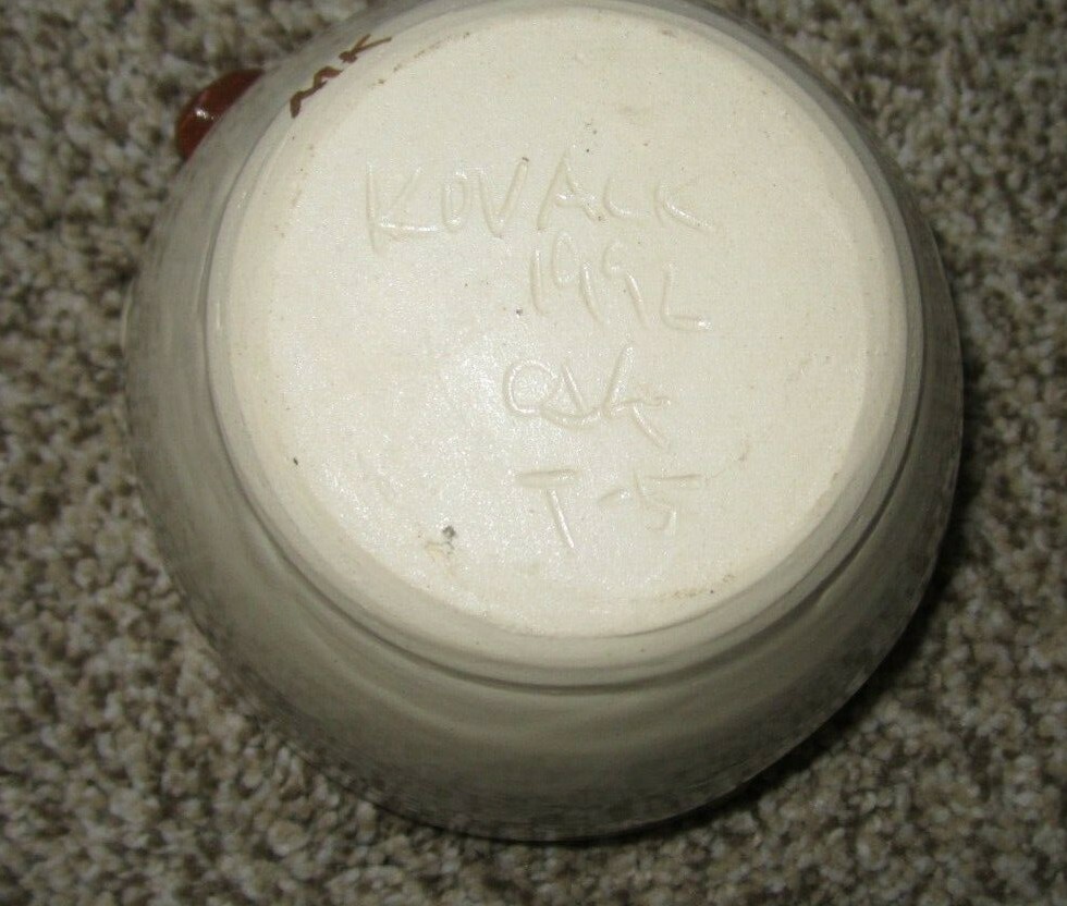 Pre-owned Apple shaped pottery piece by MK Kovack 1992 stamped on the bottom. In very good condition. Please see all pictures and feel free to ask questions. I am always glad to combine shipping for multiple items so please take a look at my other items and wait for the combined invoice before paying. I still have lots to list so check back soon to see new items. Thanks for looking!