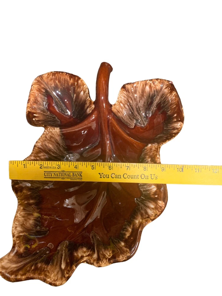 Vintage Hull Large Leaf Chip & Dip Serving 3 Section Serving Tray Platter. Item is in very good used condition no chips or cracks
