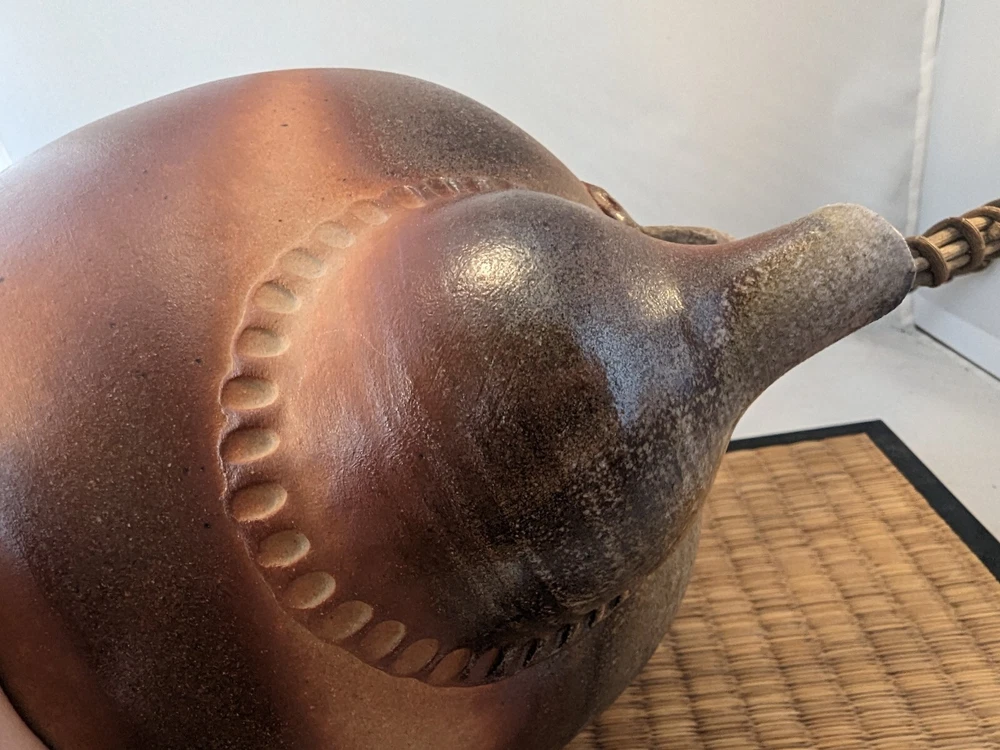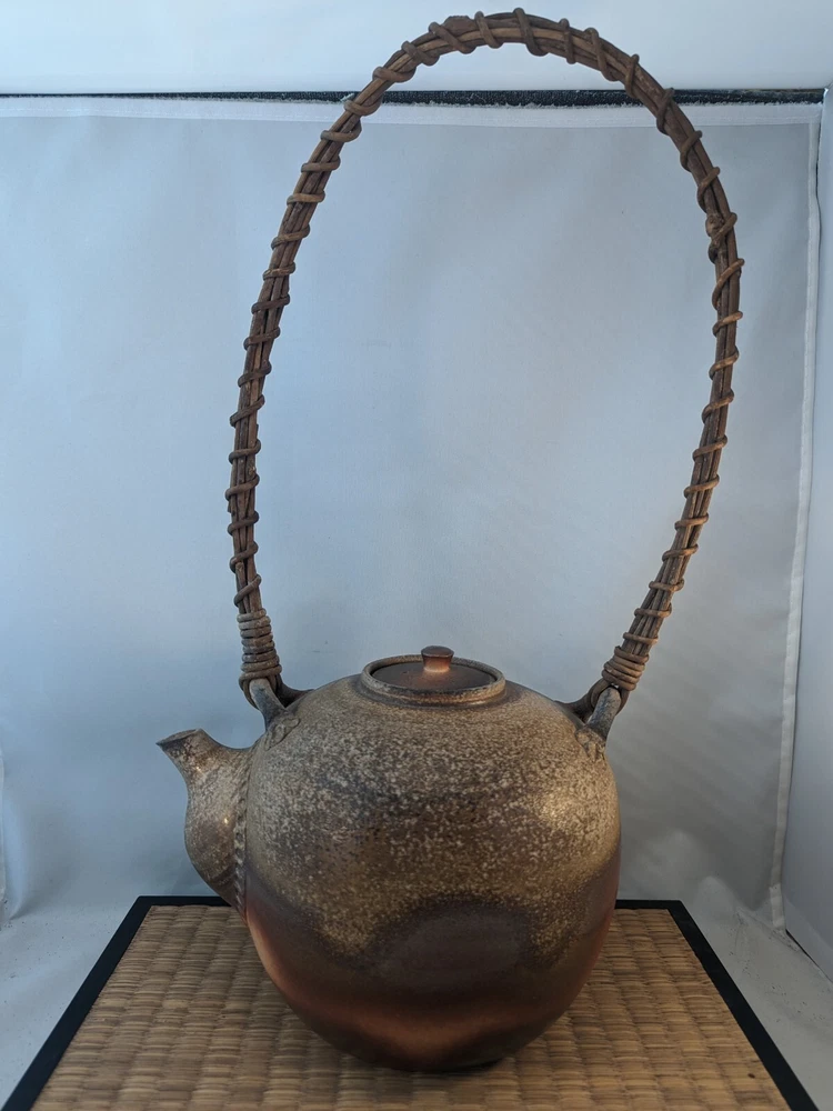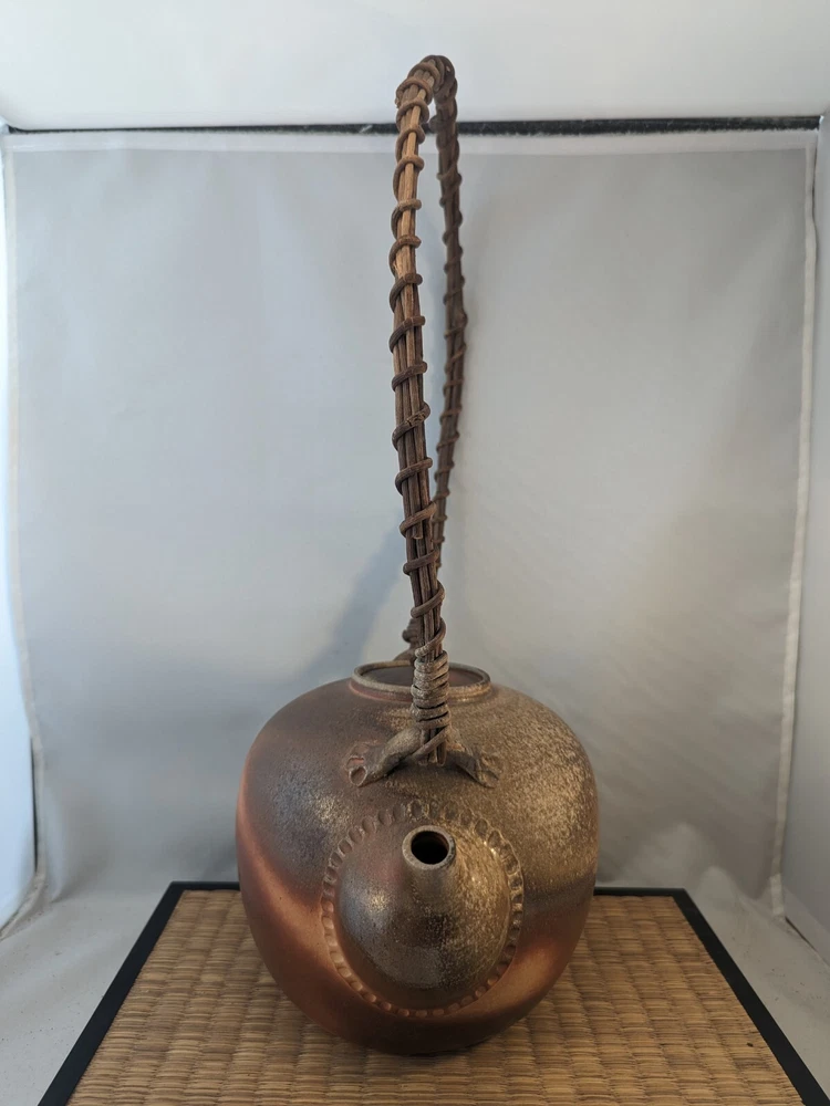 Type: Teapot Shaped Jar, Vase, or Mizusashi (water jar for tea ceremony). The spout does not connect to the inside of the bottle, so it can't be used as a teapot. Material: Ceramic Pottery with woven wisteria vine handle Age: 20th C. (1900s) Origin/Maker: Bizen ware, Bizen, Japan. Maker's mark on base. Size: 18" tall (45.7 cm) to top of handle, 7 1/2" tall (19 cm) to top of lid Weight: 3 lbs 9.4 oz (1628 g) Provenance: Yokohama antique store Collected: November 2022 Condition: Item is used in good condition commensurate with age, see photos. Again, note that t he spout does not connect to the inside of the bottle, so it can't be used as a teapot. Subject: Location: Vintage Japanese BIZEN Ceramic Studio Pottery Teapot Shaped Jar Vase Mizusashi COMBINED SHIPPING: Please check my eBay store to see what else I have listed, as I usually have several similar items listed at the same time. I’ll do my best to combine shipping for buyers of multiple items; often the combined shipping cost will be only a little more than the cost for shipping the largest item in the set. If you buy multiple items from me you can either pay the full shipping cost that eBay calculates and I can refund you the difference from what it actually costs to ship, or you can wait to receive a combined shipping invoice from me before paying. Please contact me in advance if you need a quote for combining, especially for shipping internationally, or when combining larger or heavier items, as the cost for combining might vary. For smaller, lightweight items, the cost to ship additional items should be negligible. For large items I may still need to ship separately. PAYMENT: After winning an item, either through auction, buy-it-now, or best offer, I expect payment within 3 days or a message within those three days indicating when you expect to pay by. If I don’t hear from you within three days I’ll need to mark the item as unpaid, and a few days later if you still haven’t paid the order will be cancelled, and the item relisted (or sold to the next highest bidder). Also, if you win an item and then see that I've listed something else you'd like to bid on, feel free to place your bid and then just let me know that you're still bidding on more items. END DATES, SHIPPING TIMES: My auctions typically start and end on Sunday. I try to mail items out the following business day after they’re paid for, but this depends on when in the day they’re paid for and if I have time to wrap everything and get to the Post Office before they close. My nearby Post Office recently shortened their hours, so I’m now only making two or three Post Office visits each week. I don’t count weekends and Federal Holidays in this shipping timeline, and my imaginary business hours are 9am-5pm (PST). So typically if you pay for an item on Friday, Saturday, or Sunday, it will be at my local Post Office by Monday or Tuesday, and if you pay on Monday it will be there on Tuesday or Wednesday. If I’m going to be out of town for just a few days I might adjust this shipping time from more than three days rather than set a Vacation Hold, but this is uncommon. Note that eBay is not my full-time job and I don’t have anyone helping me pack items, so sometimes unexpected delays will happen, but I do try my best to get items out on time (and failing to do so results in penalties from eBay). Please let me know if you need something urgently and I’ll try to make it a priority. SHIPPING ADDRESSES: Please verify that you have the correct shipping address set in your eBay account and your PayPal account. I’d strongly recommend sending me a message with your address just to be sure. REFUNDS & RETURNS: Refunds are given for items that arrive with damage due to shipping. I do my best to protect everything I sell, but much of what I sell is very fragile and the possibility always exists that it might get damaged along the way. If this happens to you, please let me know how bad the damage is (pictures help), and I can either give you a partial refund if you still want to keep the item, or I might request to have you ship it back using the same packaging, and I’ll refund your cost of shipping (both ways), plus the cost of the item. Typically this is all processed by requesting a refund through eBay, but I’d appreciate if you’d send me a message first. Refunds are also given for items you believe I’ve misrepresented, based on condition or otherwise. I do my best to research, describe in detail, and present comprehensive photos of everything I sell, but sometimes I make mistakes, miss a defect, or am not particularly knowledgeable about the item in question. If you receive an item that you aren’t completely happy with, please contact me and we’ll work something out. The last thing I want is for my customers to feel that they’ve been taken advantage of. Order cancellations are possible if I haven’t yet shipped an item out. Returns for other reasons are accepted, but the original shipping cost is not refunded and you’ll need to pay for return shipping. Your return will be processed through eBay, and will be paid once I’ve received the item back in the condition it was sent out in. These fees are meant to discourage excessive or frivolous returns, but if you have a legitimate reason for a return, please let me know and we’ll try to work something out. PACKAGING: Items are typically shipped in large cardboard boxes, wrapped in lots of bubble wrap, and padded with lots of recycled paper. I’ll double box items when possible, but note that it often adds a significant amount of weight to the shipment, which will usually increase your shipping cost. Feel free to send me a message with any additional packaging requests you might have, but note that I can’t always honor them (especially if you’ve already paid for shipping and your request might significantly add to the package weight). SHIPPING COSTS: Shipping is often expensive. The calculated ship