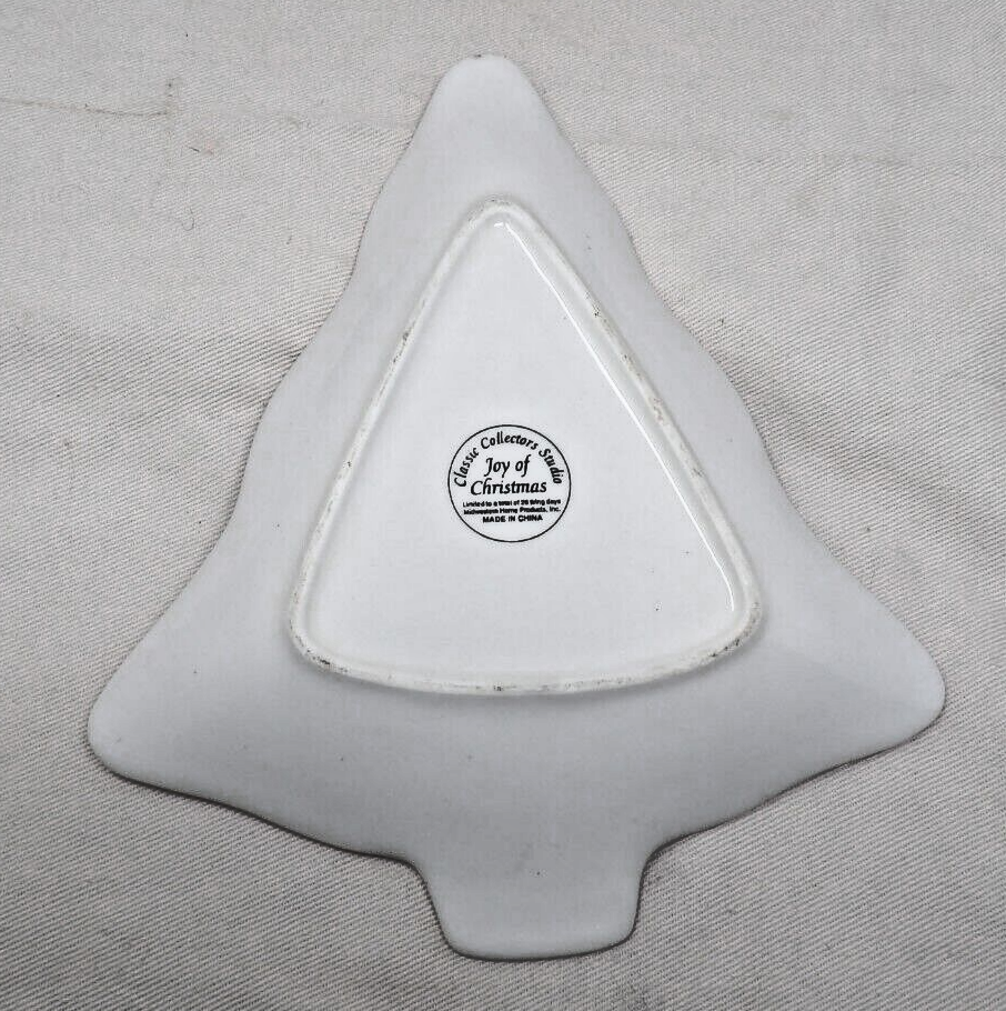 Vintage Joy of Christmas Classic Collectors Studio Tree Shaped Dish 7 1/2" x 9" Very Good Condition with no chips or cracks. Please review all photos as they are part of the description I will happily combine shipping for any other items purchased in my Store!! Please ask questions. I describe each item to the best of my ability; I am not an expert in any field. I will not always detail each flaw the same way that you may view it. Actual color or shine may differ from the photo due to lighting conditions. All items are described with honest intent. Please visit my other listings for additional antique, vintage and collectible items. If possible I will happily combine shipping. Check out my Ebay Store! Feedback Please note that per eBay's new feedback policies, only a "5" star rating is beneficial to the seller. I work hard as an Ebay seller to maintain my 100% positive feedback rating. If you are not satisfied in any way with the transaction, please contact me first. I want to earn you returned business!