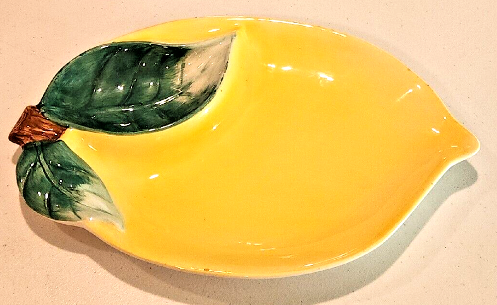 Vintage LARGE Thermo-Serv Ceramic LEMON Serving Tray Dish Chip N Dip. Good condition. A few small chips all shown in the photos.