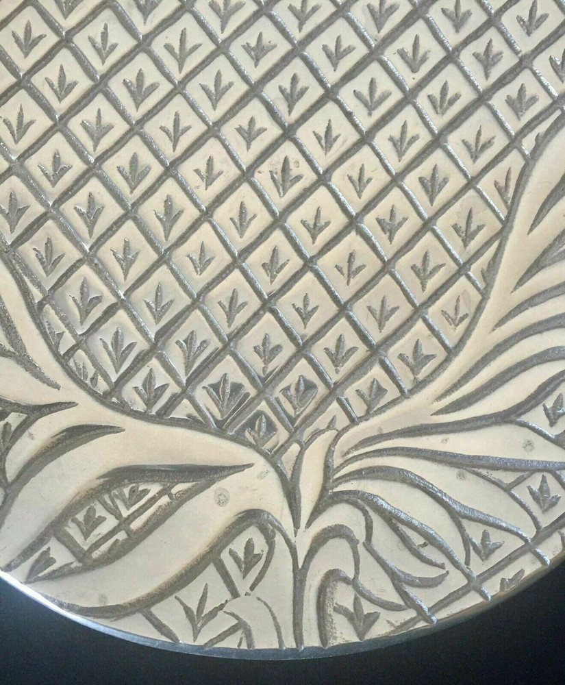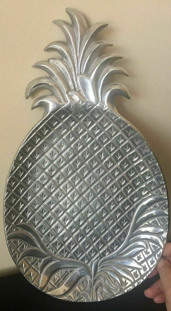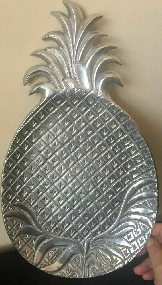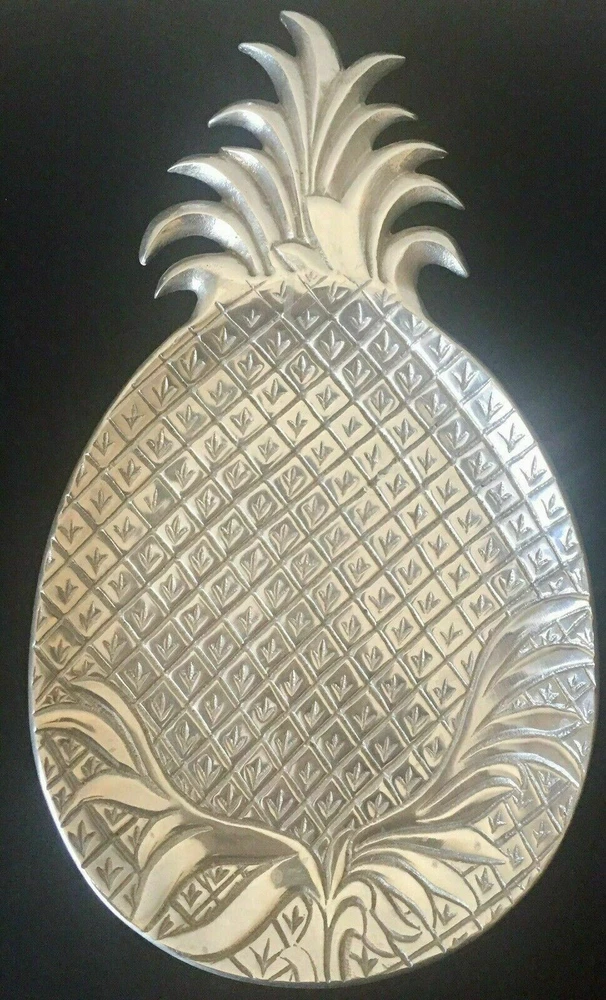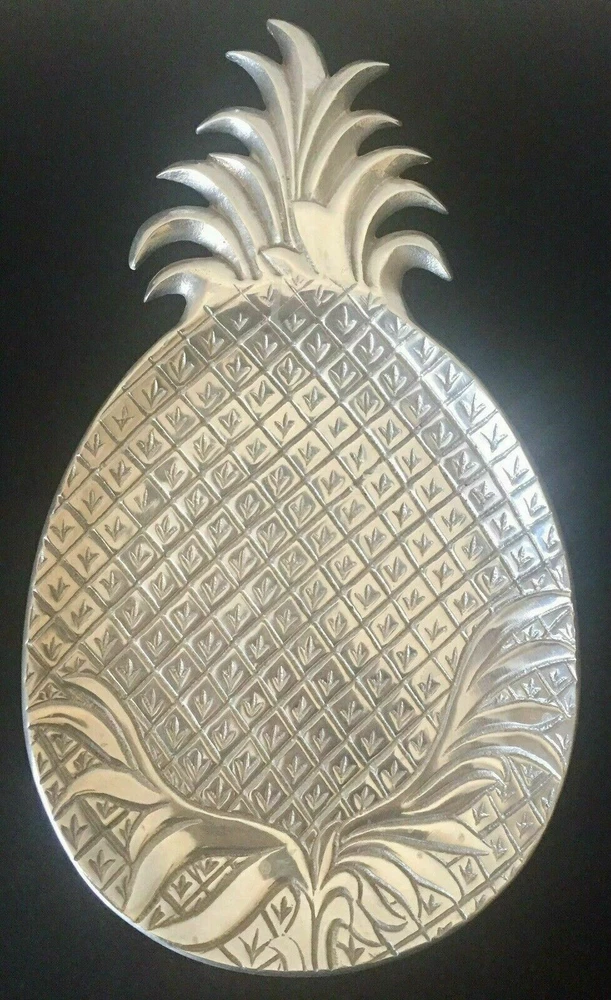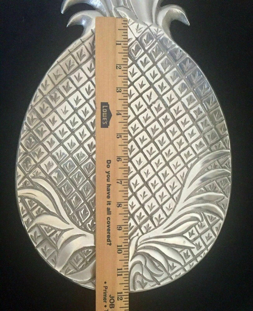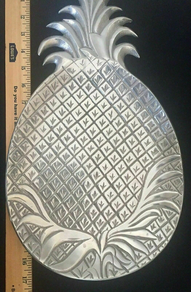 Vintage Large Chip and Dip Serving Tray with Pineapple Motif This is a fun chip and dip serving dish shaped like a pineapple. This item is in good used condition, Very minimal wear. I found no dings or dents. The serving tray measures 16.75" long by 10" wide at the bottom. Please see ALL 12 pictures for condition, measurements and specifics. Listing and template services provided by inkFrog