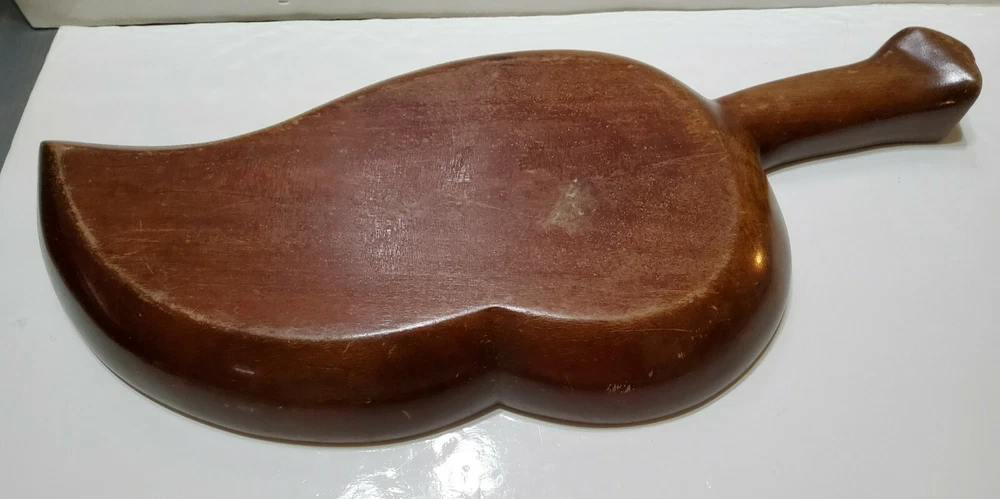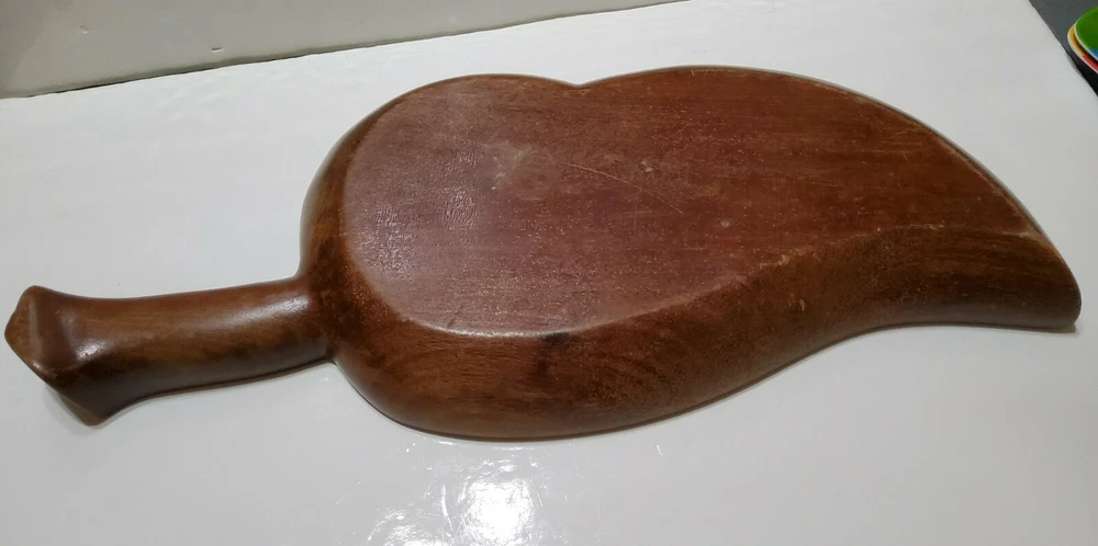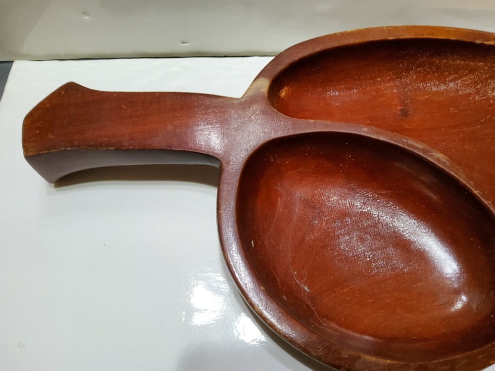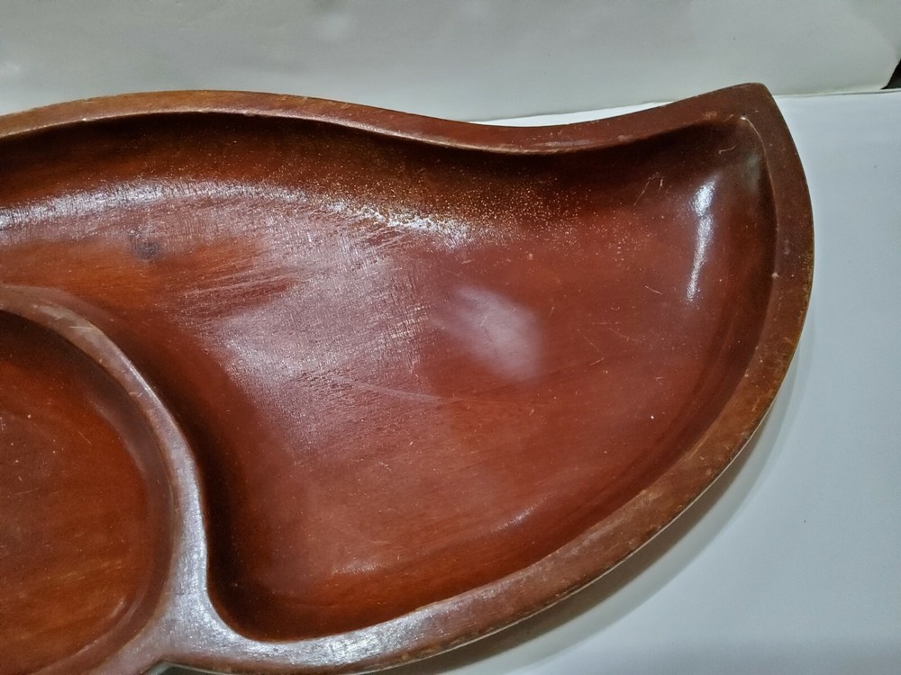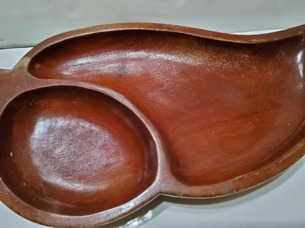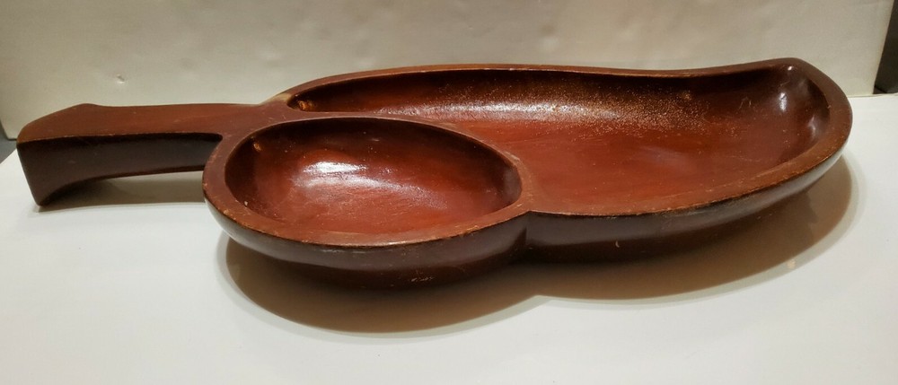Vintage Large Dark Wood Hand Made Leaf Shaped Chip & Dip Bowl Charcuterie Board. 21x9.5
