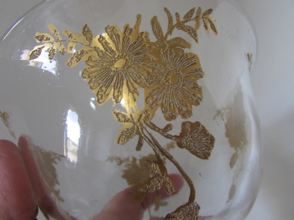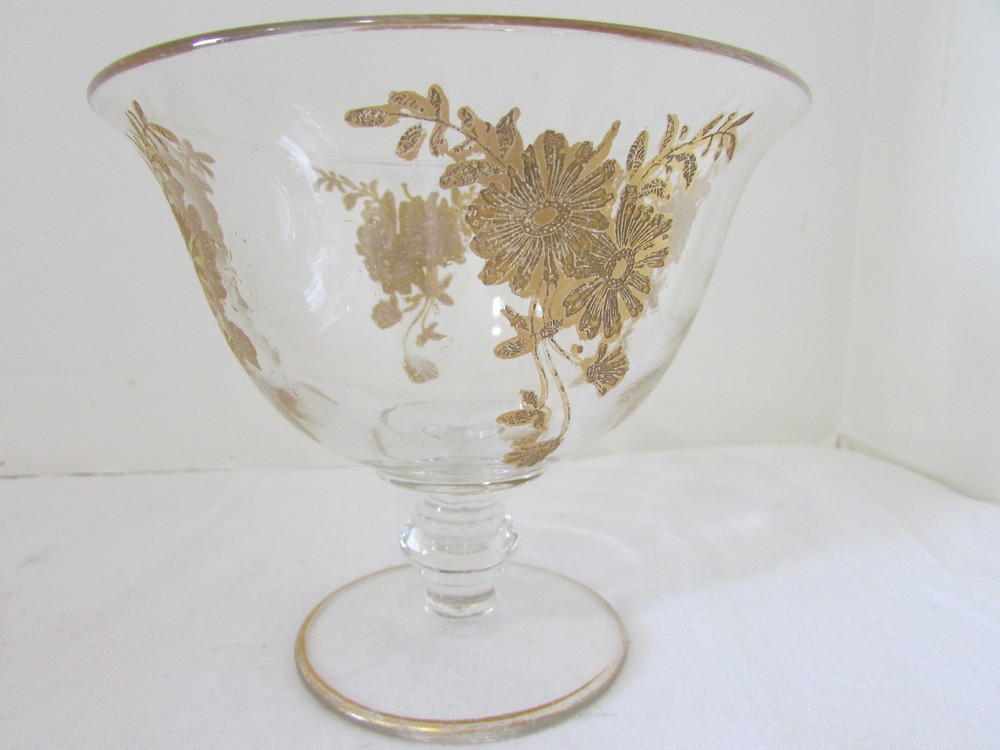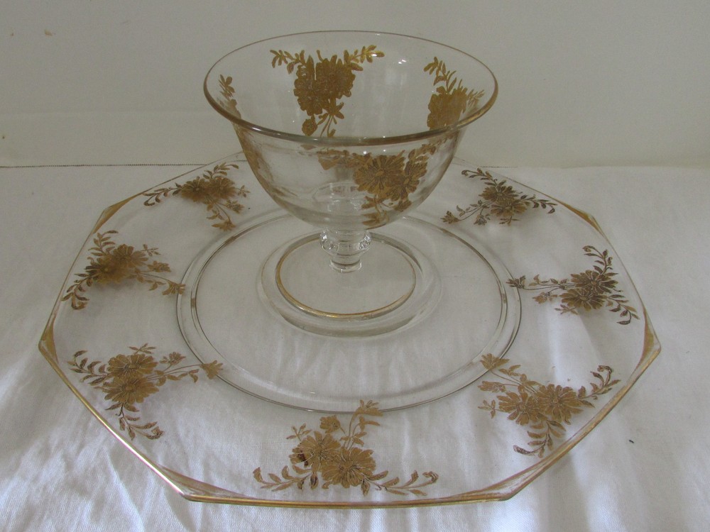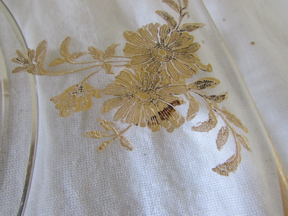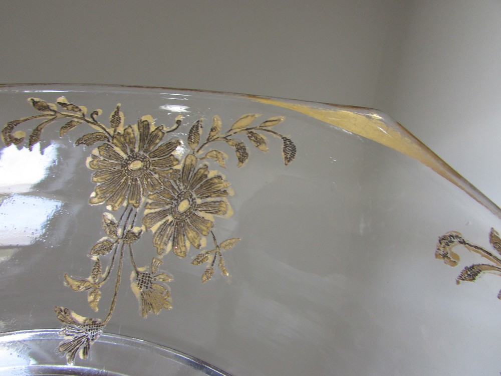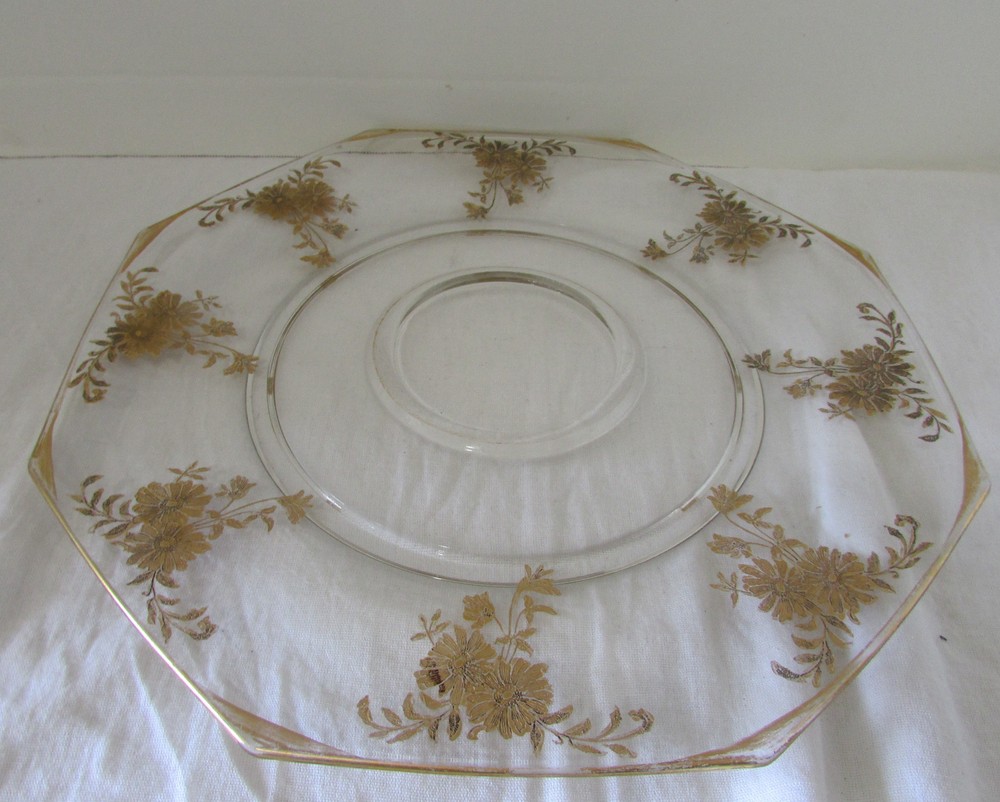 Vintage Large Octagonal Gold Floral Overlay Veggie and Dip Platter & Center Bowl . This charming tray measures 13” in diameter. There is a raised ring in the center to securely hold the pedestal dip bowl, which measures 5-3/4” in diameter and 5” tall. Both pieces are in excellent condition with no chips or cracks. The gold overlay pattern is somewhat worn, particularly around the rim. This is perfect for veggies and dip at your next party. Ordering Information Payment Payment is due within 4 days by PayPal. After 4 days, eBay will automatically initiate a case to resolve. If there is a problem, please let me know as soon as possible. Shipping I ship packages within one working day which I define as the following open Post Office day (Mon – Fri) after receiving your PayPal payment. Problems/Returns I accept returns within 14 days after receiving your item, as verified by the date of the delivery confirmation. Return postage is paid by the buyer. I thoroughly describe my items and take lots of pictures, so please look closely at the listing to be sure of what you are buying. If you have any questions or problems after receiving your item, please contact me. I want you to be happy. Feedback I leave feedback when your transaction is complete. If you are considering leaving a neutral or negative please contact me and let me know - I strive for 5 star feedback from my customers, and would appreciate a chance to fix any problems you have experienced. I respond quickly to your comments. Thank you for looking!