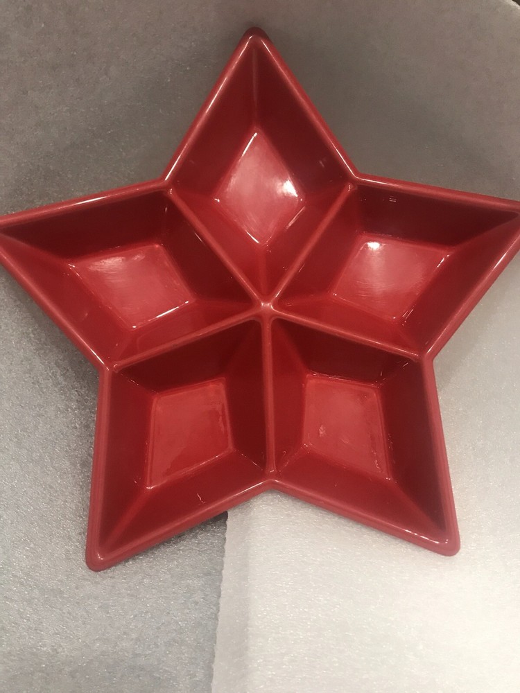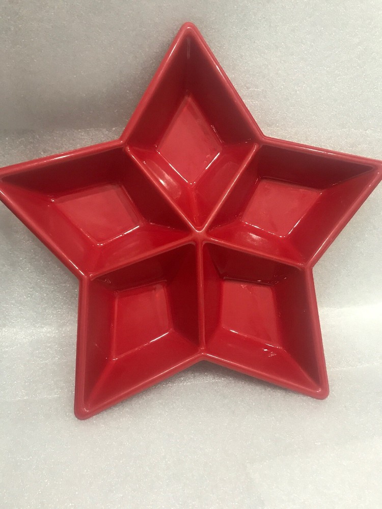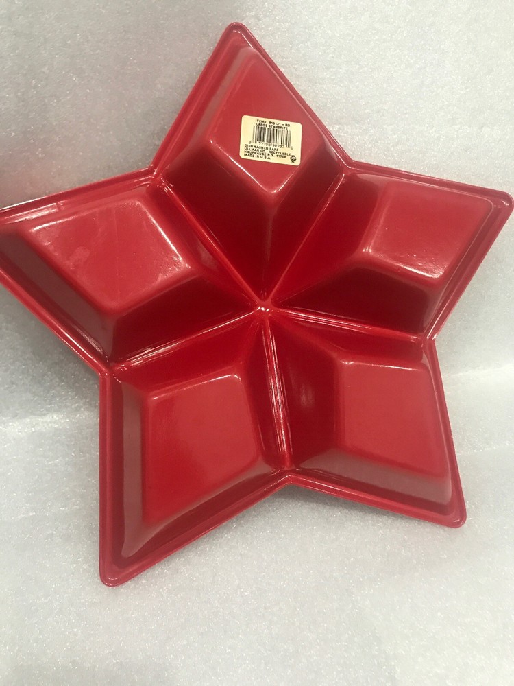 Preowned no returns Vintage Large Red Plastic Star Chip & Dip Tray Christmas Or Holidays Preowned. Condition is Used....