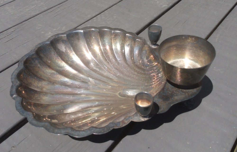 Vintage Large Silver Plate Clam Shell Chip and Dip Serving Tray w Candle Holders A vintage large silver plate clam shell chip and dip serving tray with candle holders. Some tarnishing. 3 inch diameter center cup with a detailed sea serpent dolphin leg. Two candle holders. 12.50 inches deep by 10.50 inches wide by 4.50 inches tall. Please note all photos for they too are a part of our descriptions. Also please note local pick up is available. Inv. ee SHIPPING We will combine purchases upon requests. We ship most all of our items USPS. We also Ship International. We are also professional packagers. We do pack with air bags, newspapers and other types of light packaging fillers. Insurance is your choice but we cannot be held liable for damaged or lost items if they are not insured. Also, all our items are not guaranteed for their original purposes. We promise to treat your item with care and respect when packaging for transport. Nearly all of our items are from a secondary market. We make every effort to describe any flaws or damage. Please note all photos and contact us with all questions before purchasing our inventory. We never intend to misrepresent our listings. If you select local pick up, please call us to set an appointment time. Please pick up your purchases within thirty days unless other arrangements have been made. Note: Funds need to be cleared before item(s) are picked up. If your item(s) you purchased from sugarcreekantiques1 have not been picked up within sixty days, we have the right to resell said item(s) and the buyer forfeits all payment(s) made on said items. NOTE This item is also available for pick up at our shop by you or your chosen shipper. We always suggest getting several quotes because rates can vary from one shipper to another. You can google antique furniture shipper and many companies are available. Rules For Local Pick Up of Items In Our Place of Business and or Outsourcing Shipping. Funds need to be cleared before item(s) are picked up. If selecting Local Pick Up please call to set an appointment time. All items will need to be picked up at our business site within 30 days unless other arrangements have been made. Also, you can choose your favorite Shipping Agent or use the ones our customers have used. Please pay your Shipping Agent the negotiated shipping cost. Listed below are a few of the Freight Forwarders our customers have used: USHIP, Timothy Terhune, (VT), Transitsystems (CA), Plycongroup (NY, Canada) Local Pick Up Items will be held for 60 Days. After 60 days, if an item(s) you have purchased is not picked up, we have the right to resell said item(s) and the buyer forfeits all payment(s) made on said items. PLEASE NOTE: Shipping and handling is always disclosed in the auction before you bid. So by bidding, you agree the amount is acceptable and warrants a 5 star feedback. INTERNATIONAL BUYERS: We only ship to other countries via the eBay Global Shipping Program. Import duties, taxes, and charges are not included in the item price or shipping cost. These charges are the buyer's responsibility. Please check with your country's customs office to determine what these additional costs will be prior to bidding or buying. RETURNS: We will accept returns if we have described the item incorrectly. The refund is contingent on: The item(s) must be repackaged in the same box and in the same manner we shipped it. When we receive said package, item(s) must not be damaged and it has to be the original item(s) we sent to the buyer. Buyer will pay for the returned package to be sent to our address. Welcome to Sugarcreek Antiques All of our items we sell on eBay are antiques and collectibles. They range from the early primitives, eclectic, downright weird, to today's collectibles. You probably will find almost anything you need right here in our store. We are located in the largest settlement of the Amish in the world. We reside in the beautiful Tuscarawas Valley. It is a rich rolling countryside and it is one of the larger tourist attractions. People from all over the world visit Sugarcreek and the surrounding countryside to view our Amish Swiss German ancestry. Please add us to your list of favorite sellers.