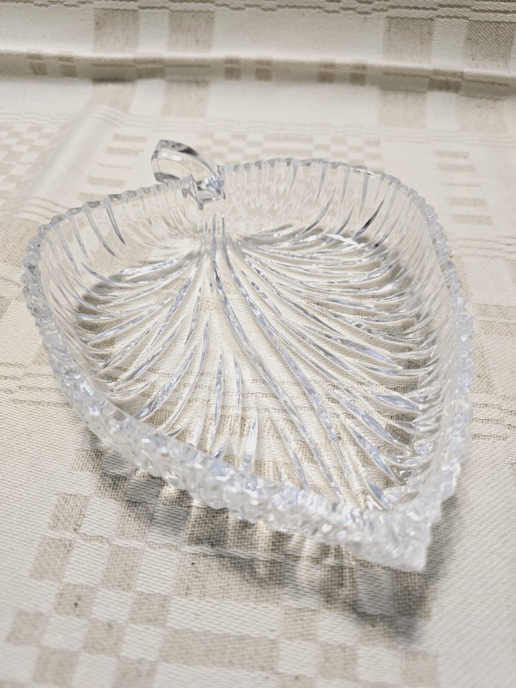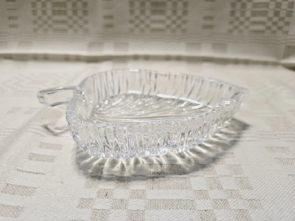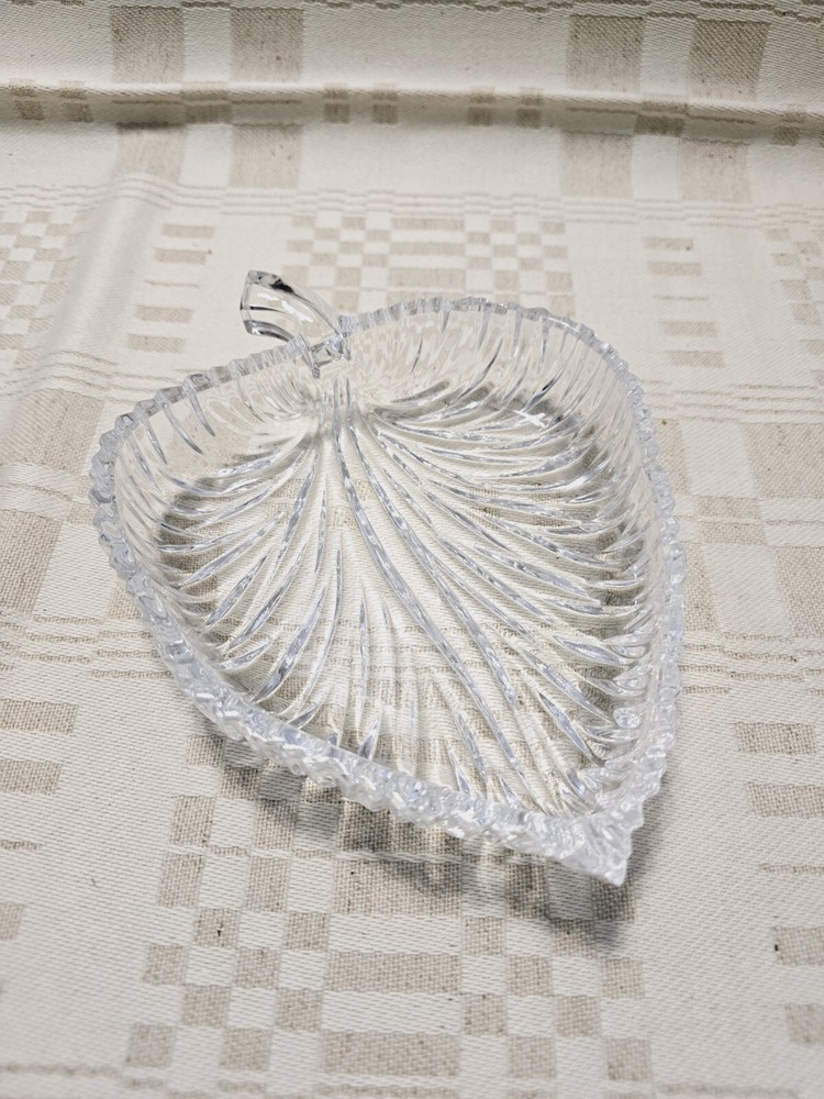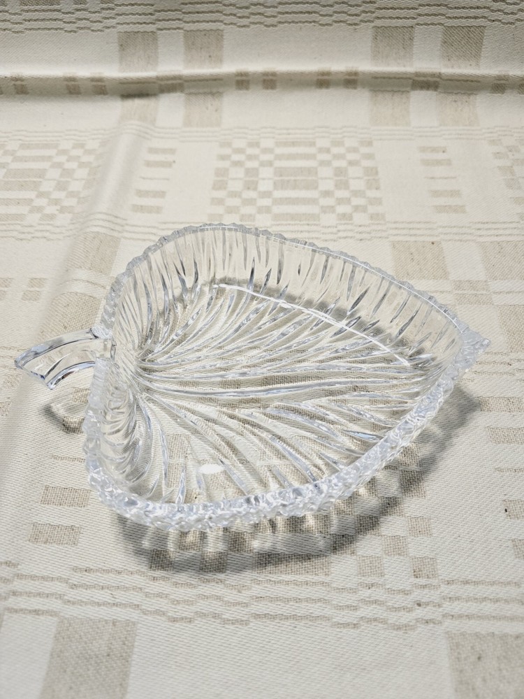 Vintage Leaf Shaped Candy Dish by Nova Studio This is a leaf shaped candy dish perfect for serving small candies or nuts. Made by Studio Nova in Japan. The glass is heavy, thick and sturdy. The dish itself looks and feels luxurious. It has a beautiful style and finish. Bright and beautiful, would make a lovely gift. 🏡 Condition This glass is in perfect condition. There are no nicks, cracks or chips. 🏡 Measurements This glass dish measures 6” across.