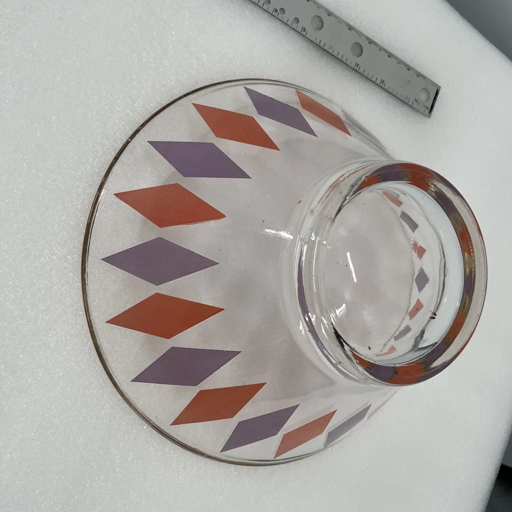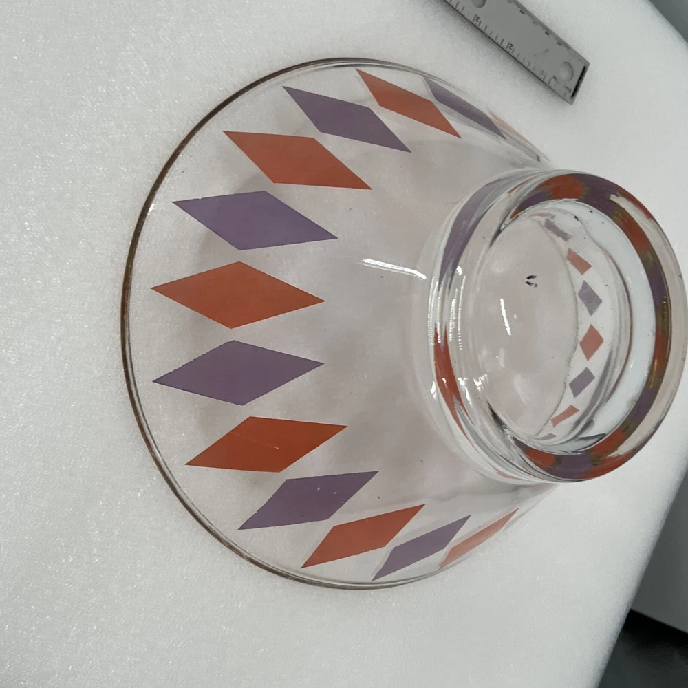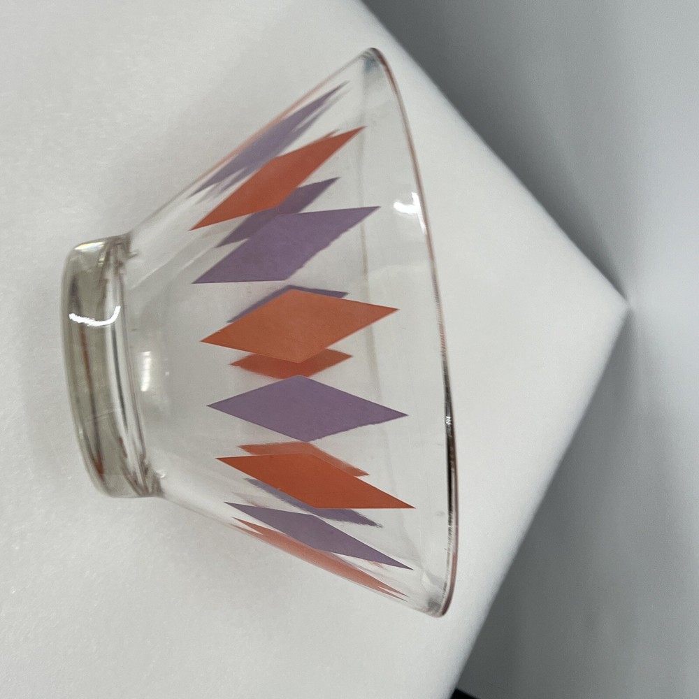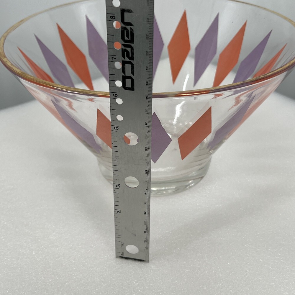 Vintage MCM ANCHOR HOCKING Orange Purple HARLEQUIN Chip Bowl Large...