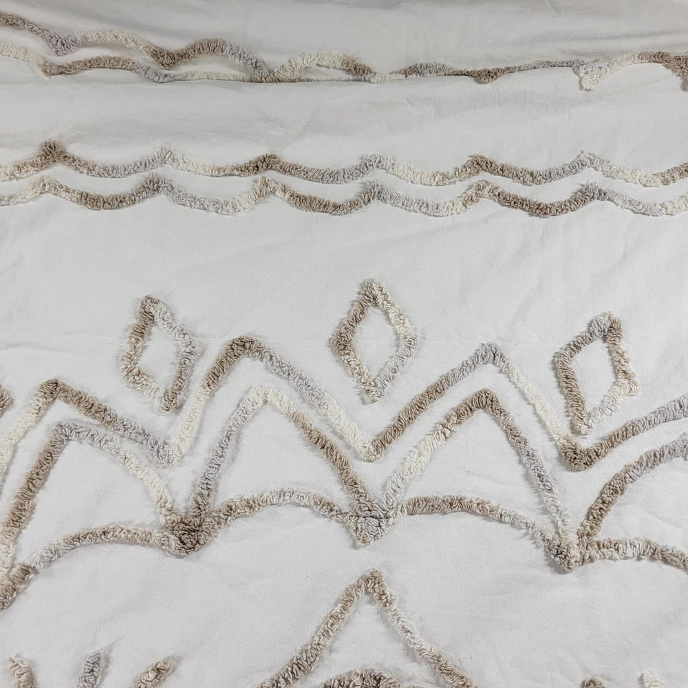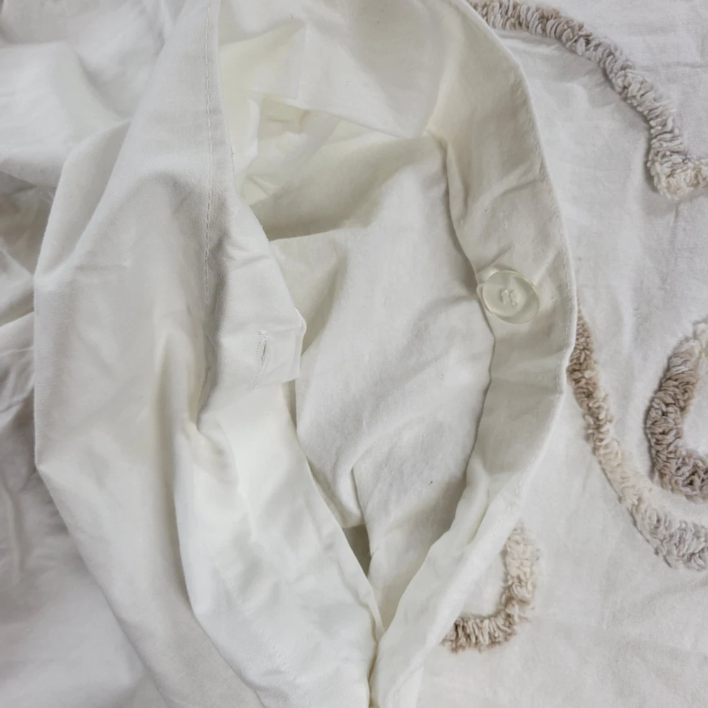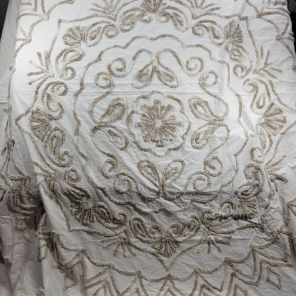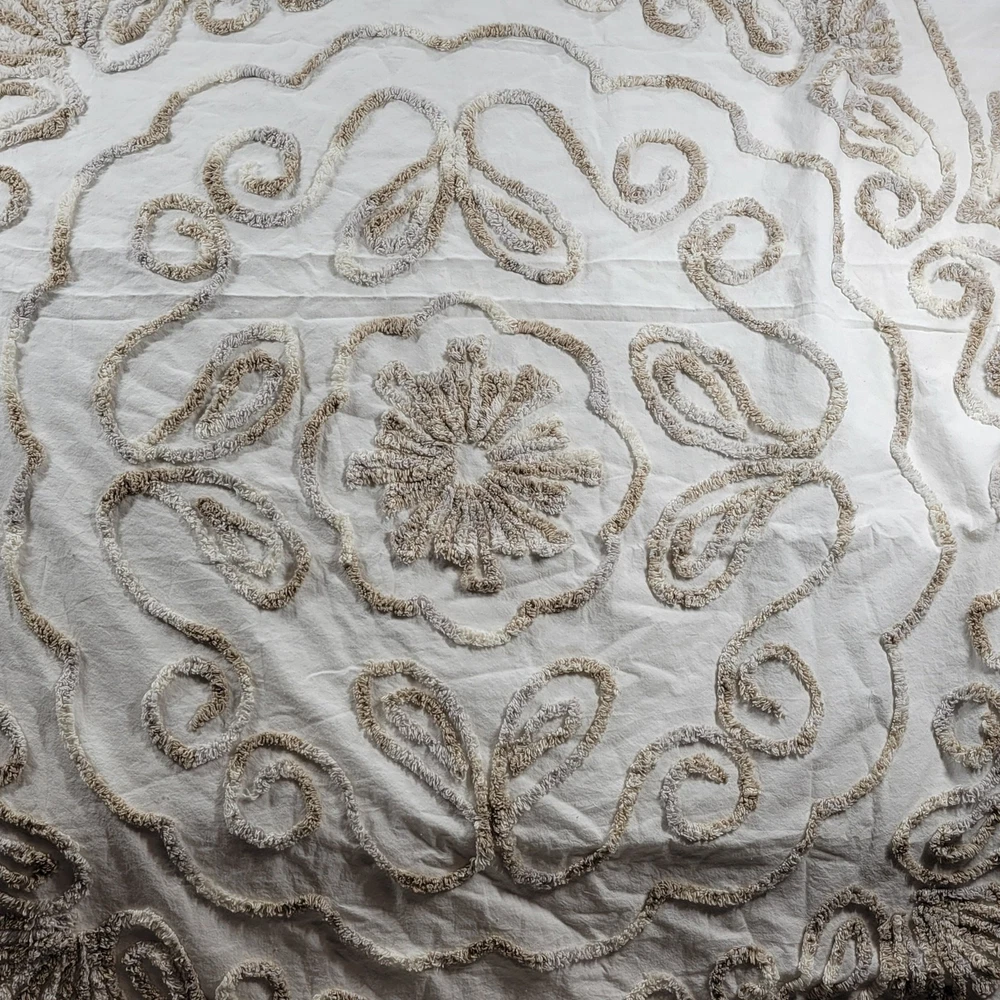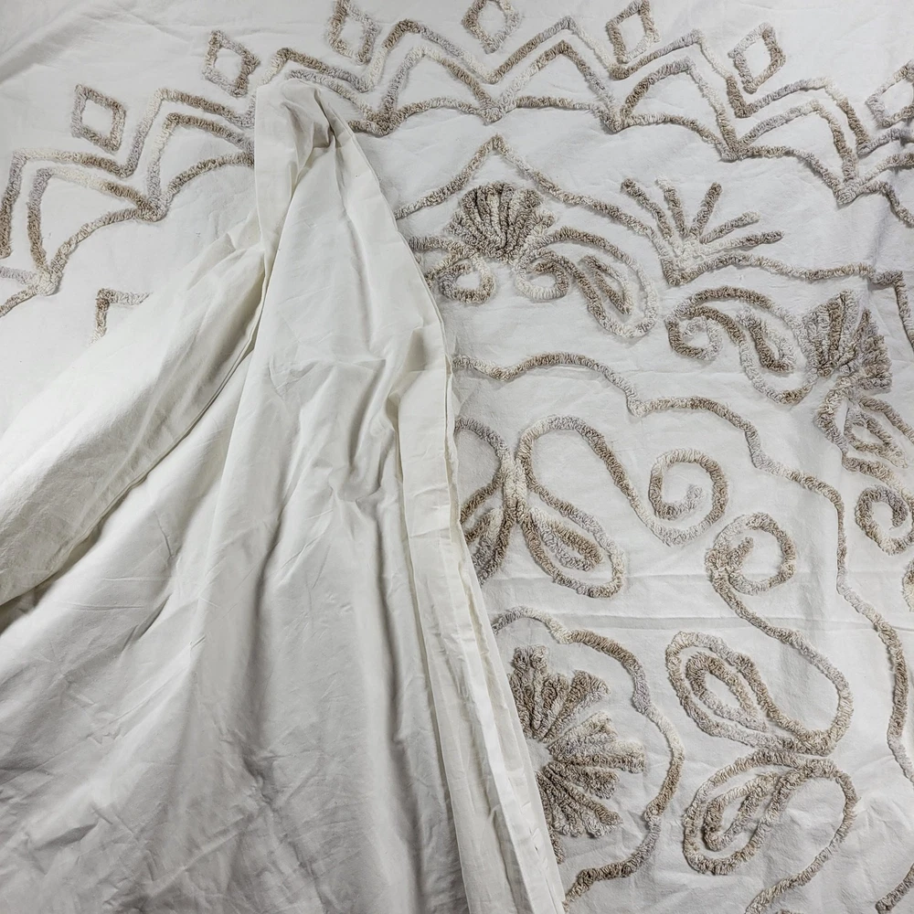 <![CDATA[<div>Luxury Madison Park Chenille Cotton Duvet Cover Set – King Size White Floral Elegance with Embroidered Shams Button Close Measurements: Duvet cover 104" x 92", King shams 20" x 36" Excellent Pre-Owned Condition Brand: Madison Park Color: White Size: King Size Content / Material: Cotton -Button Close -Cotton Duvet -Boho Medallion Design -Modern Luxe All-Season -Cover Bed Set with Matching Shams Thanks for shopping with me today! I ship on orders received by 3 pm each day. Most items are cleaned, and lovingly used, in a smoke-free environment but may show appropriate signs of wear. I do my best to make note of any irregularities with an * here in the description but feel free to inquire:)