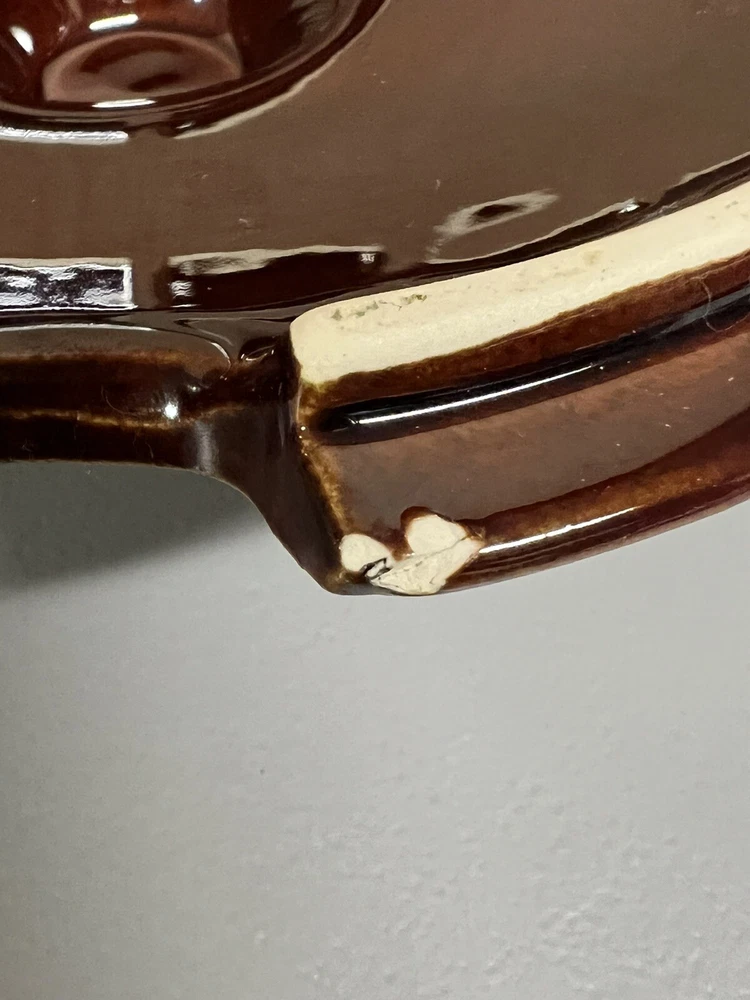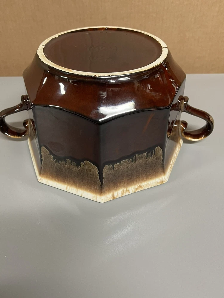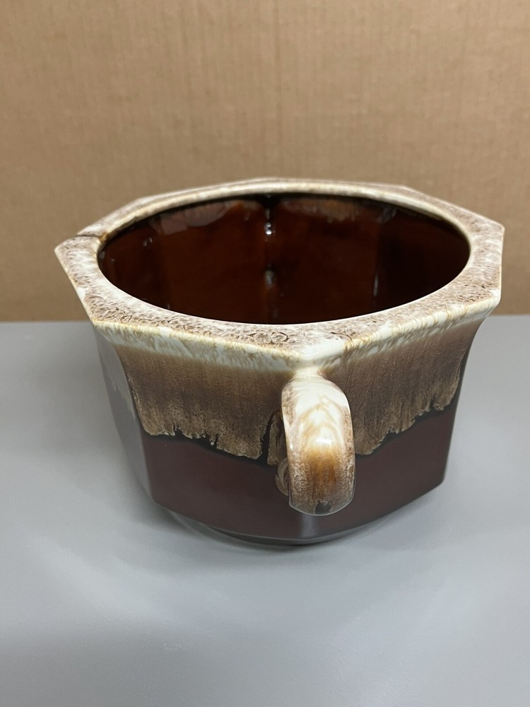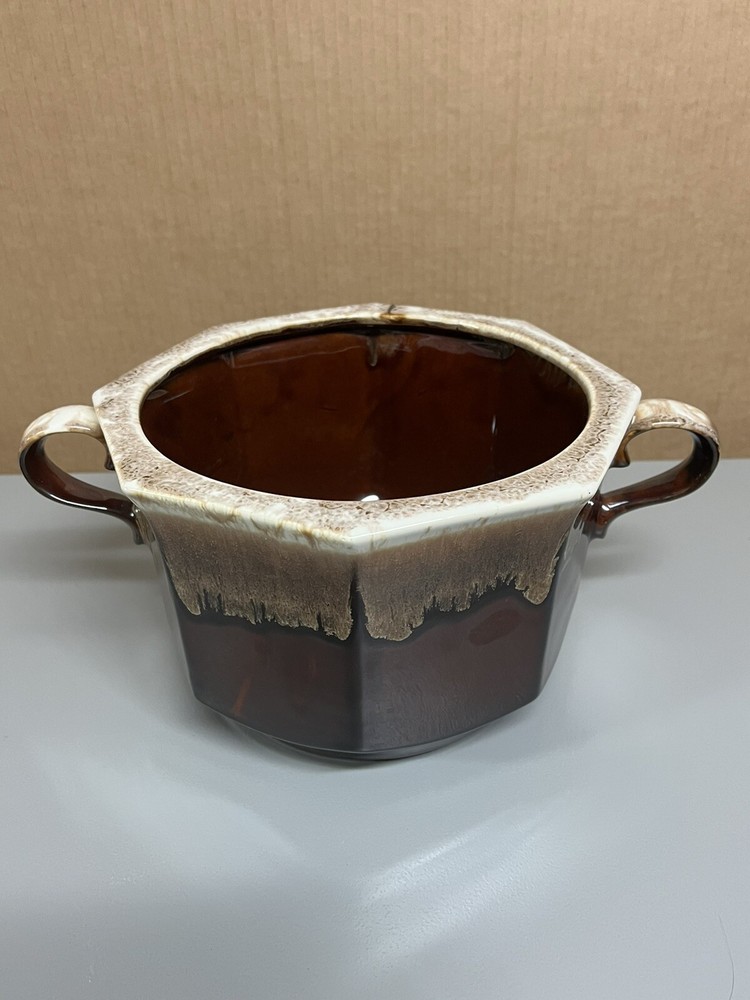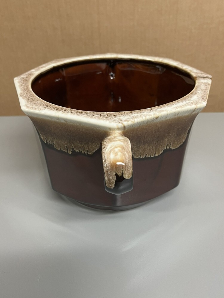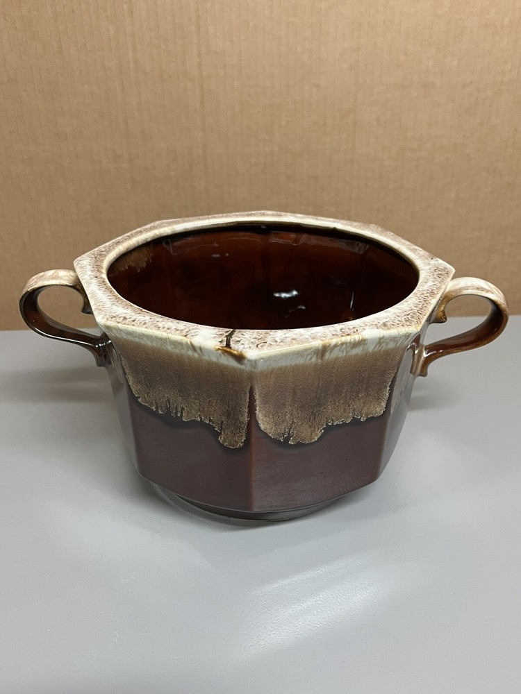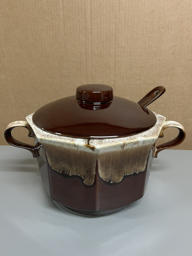 Vintage Mccoy Brown Dip Large Double Handle Soup Tureen with Lid & Ladle 226. In amazingly great shape with only 1 tiny chip on lid. Does have some minor manufacturing glazing flaws. 1 on lid 1 on ladle. Roughly 8.5” tall with lid on 6” without 13.5” wide with handles 10” without Please examine the photos closely as they are an important part of the description. If you need more information than we provided, then please ask for clarification prior to bidding. Thank you The Caravella Estate