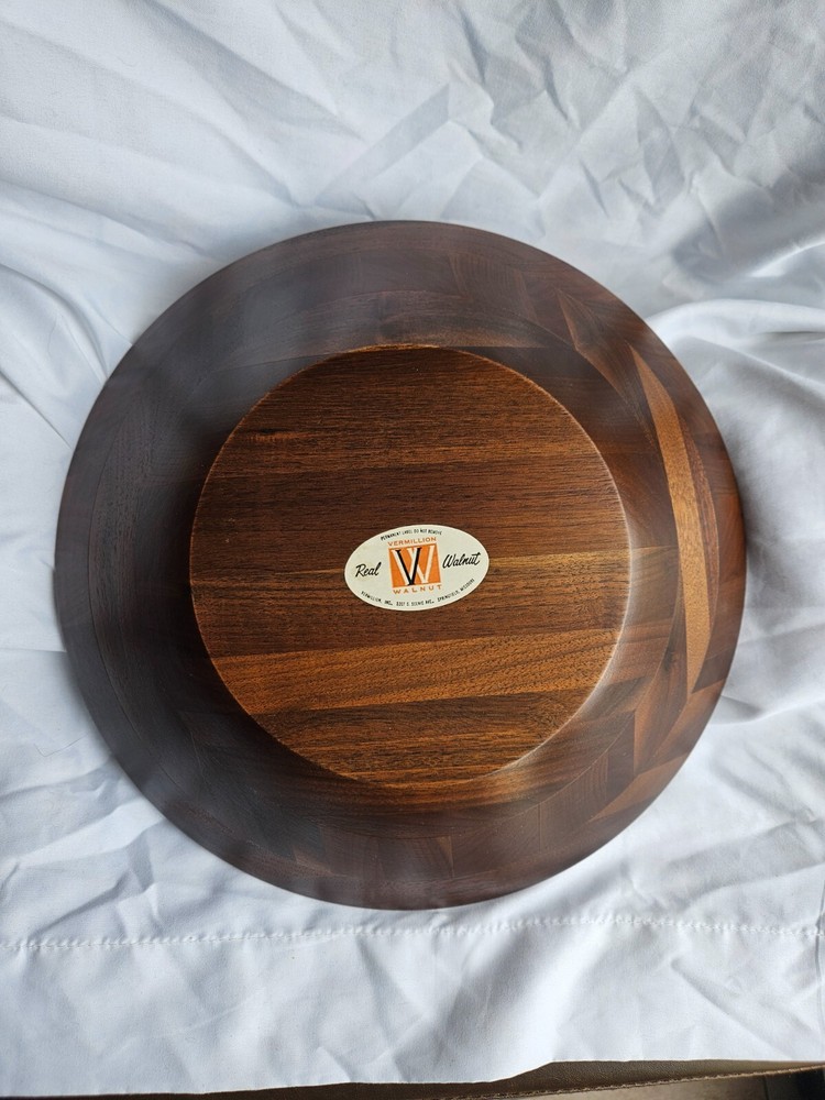Vintage Mid Century Vermillion Walnut Large 12" Chip and Dip Bowl Chip bowl only. Dip bowl not included. I listed it as used as it has been in a china hutch and shows some age.