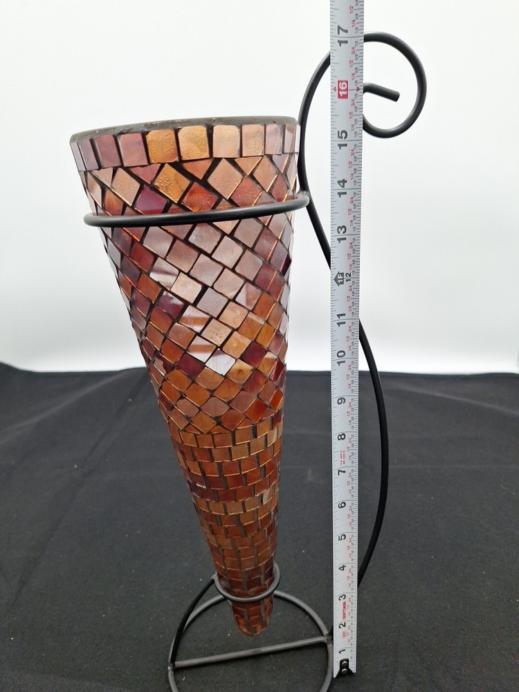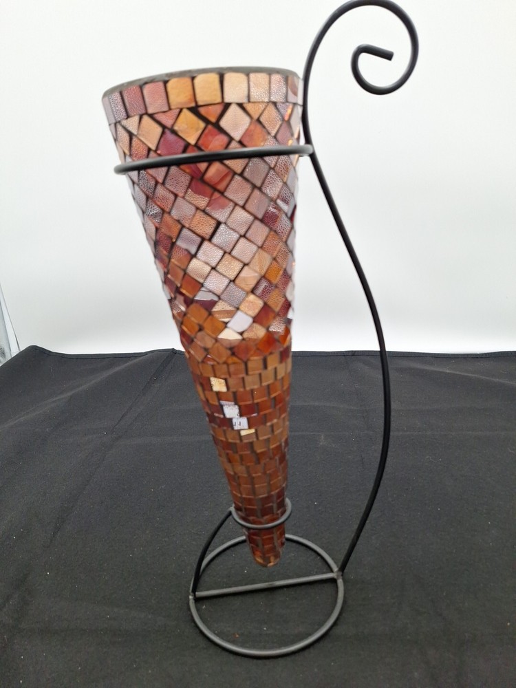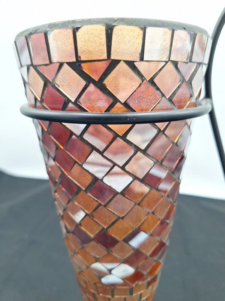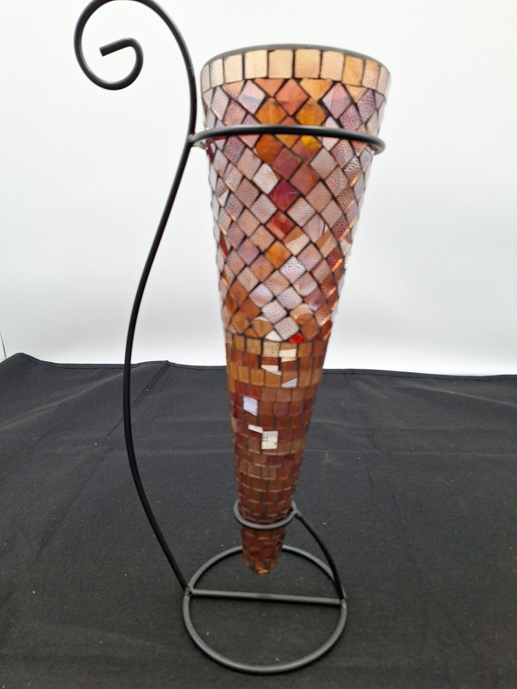 Vintage mosaic vase with Wrought Iron stand