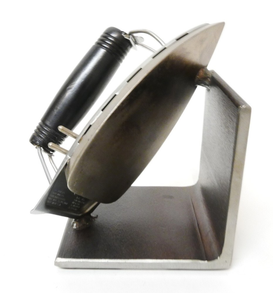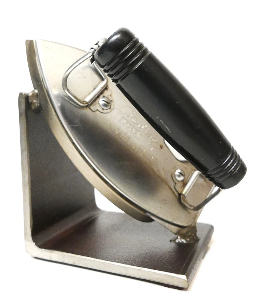 The Vintage Moss Studios Custom Sterling Ezy Pack Tourist Iron Bookend stands at 6.5" tall, featuring a unique L-shaped design. Handmade in 2021, this large iron bookend is part of the Moss Studios Collection and showcases a vintage American style. With a metal finish and vintage pattern, this single bookend is suitable for all occasions and adds a touch of charm to any bookshelf or collection. The sturdy cast iron construction ensures durability while the vintage design adds a touch of nostalgia to the piece, making it a standout decorative collectible in any home.