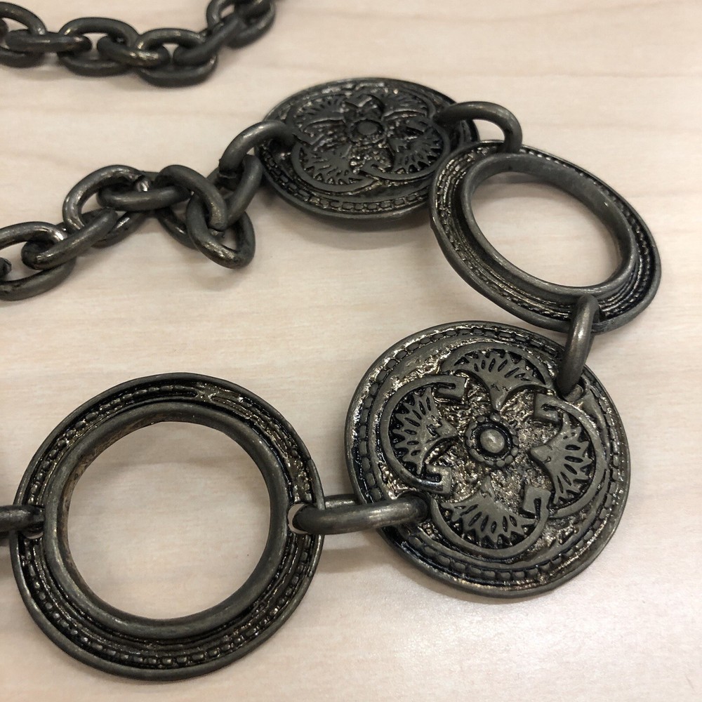 Add some bohemian flair to your outfit with this beautiful metal/brassy oval shaped chain belt by NY Studio. Perfect for women who want to add a touch of whimsy to their wardrobe. The belt is perfect for belly dancing or any dancewear occasion. It features unique designs and is perfect for any special occasion. *** NWT “defects”-vintage item and has signs of age Approx 39” Please check out the photos for more details on the condition of the item