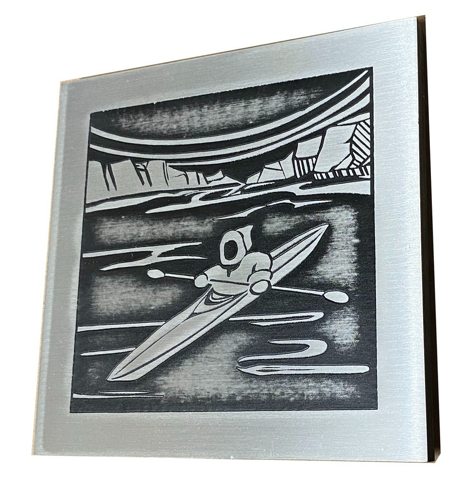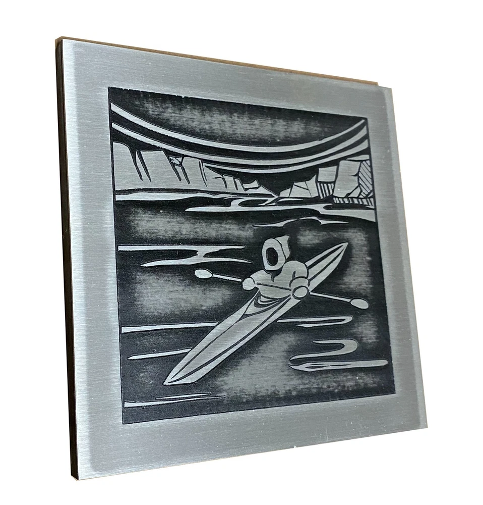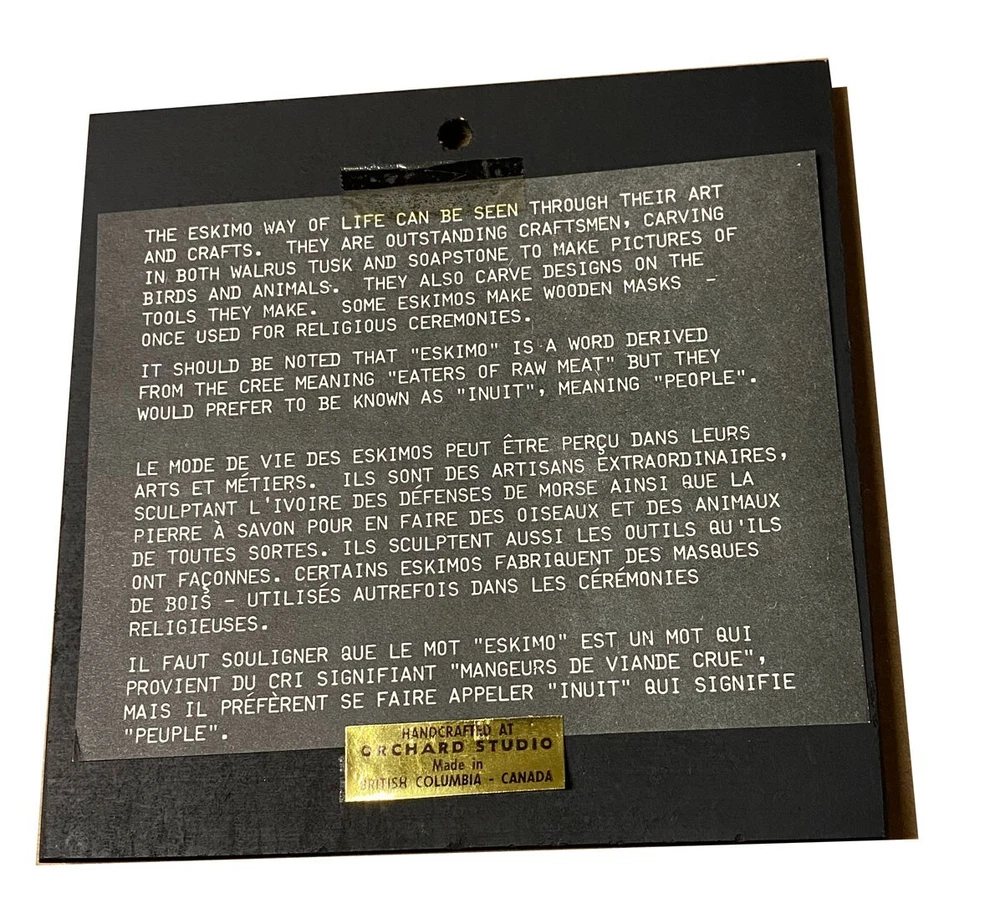 Here is a wonderful decorative collectible from Canada - Inuit people! This item came from my late grandparents home (gone many years). They used to travel to Canada periodically and this item is one of the souvenir's that they obtained on one of their trips. It has been stored in a box many years and is in excellent condition. Below is more descriptive explanation. Crafted with meticulous attention to detail, this Vintage Orchard Studio Original handcrafted Canoeing Eskimo pictoral brings a touch of Arctic elegance to any space. The piece showcases a beautifully etched scene of an Eskimo on a canoe, surrounded by intricate patterns that evoke the rich cultural heritage and natural beauty of the region. The combination of aluminum and wood materials adds depth and durability, while the small square shape ensures this wall decor fits seamlessly into a variety of settings. Ready to hang and exhibiting a 3D effect that enhances its charm, this plaque is a unique work of art that requires no additional parts for display. Proudly made in Canada, it's a testament to skilled craftsmanship and timeless taste. Measures slightly less than 5.75" x 5.75" *** Fast Shipping ***