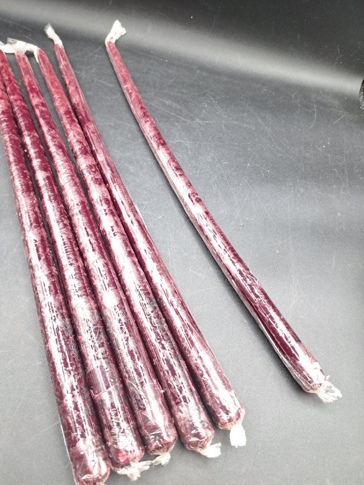 Add a touch of vintage charm to your home décor with these Patrician hand-dipped taper candles. The candles are made of high-quality wax and come in a pack of six. Each candle is 18 inches tall and has a tapered shape, making them perfect for use in a variety of rooms such as the entryway, foyer, living room, bedroom, guestroom, and dining room. These candles feature a smokeless and dripless design, ensuring that they burn cleanly and evenly. They are perfect for use during Christmas, holiday, or romantic themed events. The candles have a purple color and weigh 5 ounces each. They are 1 inch wide and have a length of 18 inches. Bring the vintage charm of these Patrician hand-dipped taper candles into your home today!