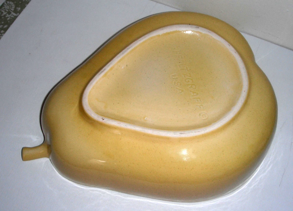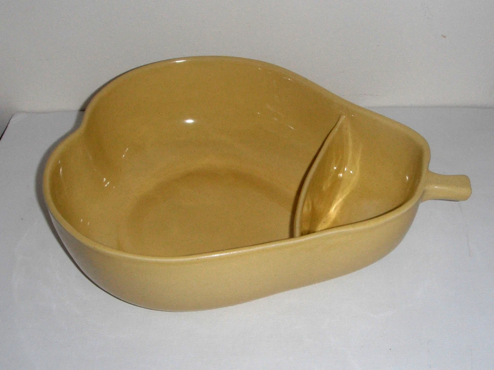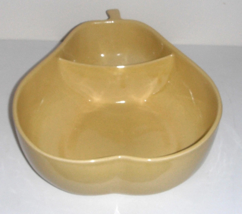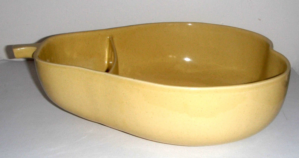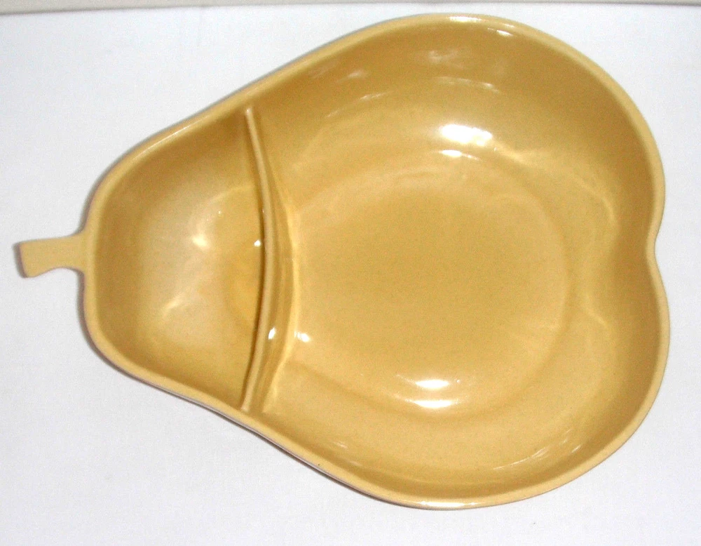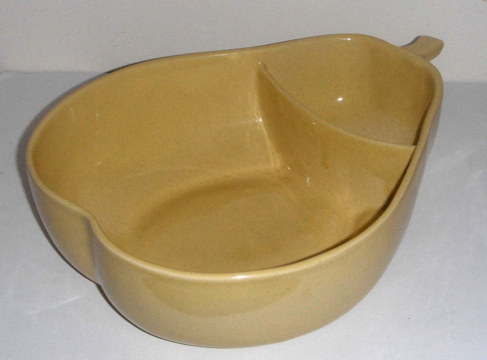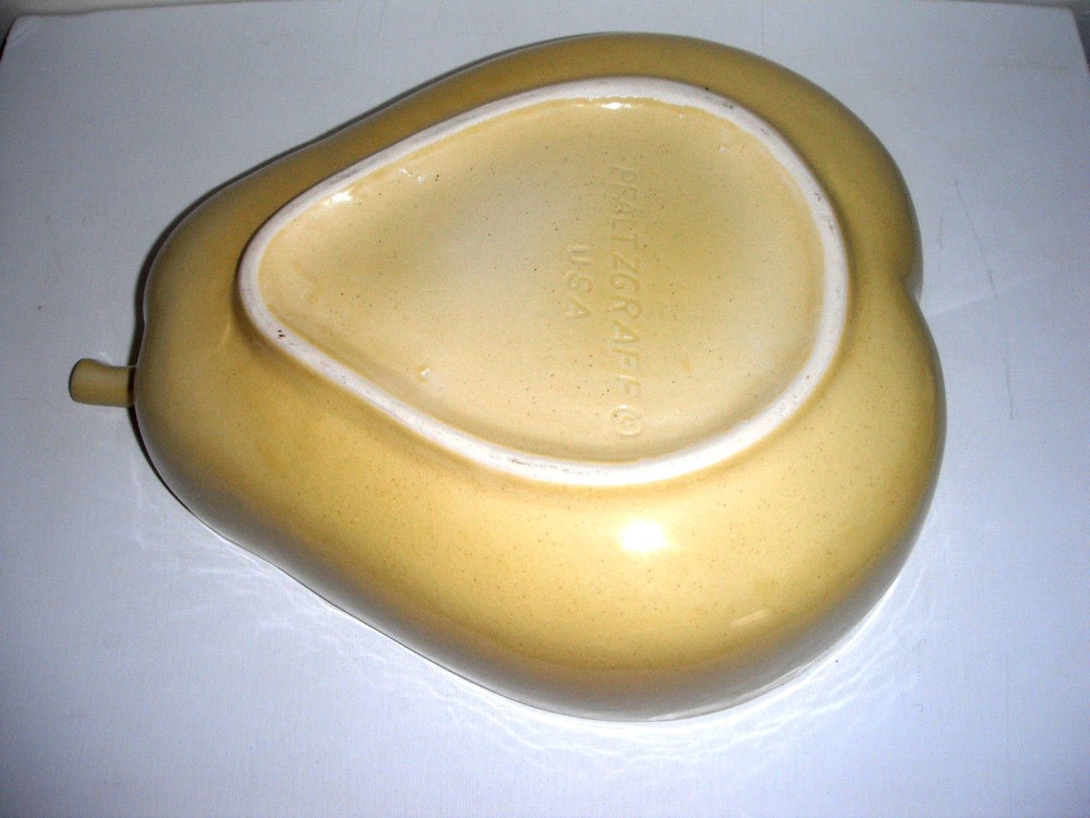 Vintage Pfaltzgraff Large Yellow Pear Shaped Chip Dip Divided Bowl 12" x 9 1/2" at the widest point and 3 1/2" tall Very Good Condition. No chips, no cracks Please See Photos View more great items RETURN POLICY Kindly read listing description & look at pictures thoroughly before making your purchase as Items are as described. If you have any questions about the item, please ask before bidding/buying. Please contact me for all returns. Returns must be received in the original condition & packaging as received, & within 30 days of initial purchase. Buyer pays for return shipping. Refund (less shipping & 15% restocking fee where applicable) will be promptly issued once item is received back & inspected. Please note that shipping is non-refundable. Thank You very much