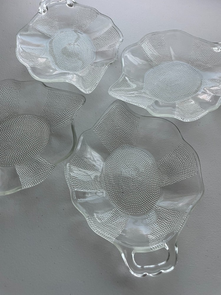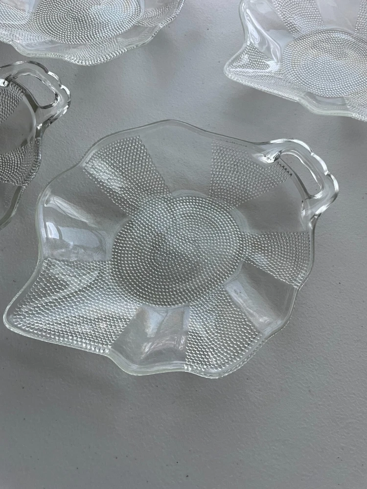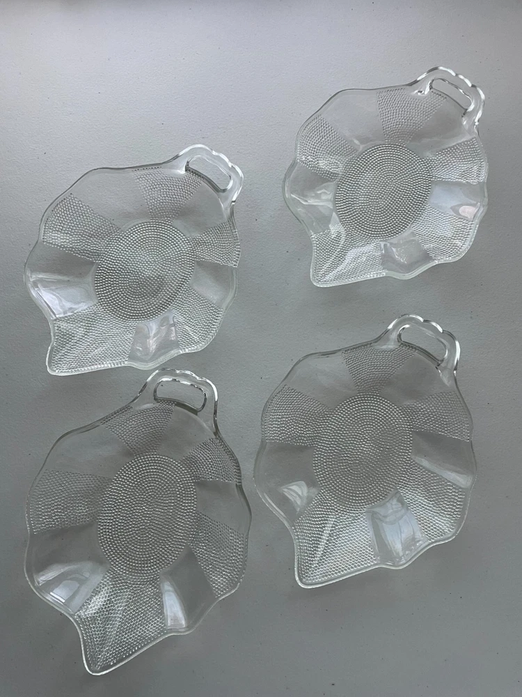 Vintage Pressed Glass Leaf Shaped Antipasti Serving Plates Set of 4 7.5 x 6"