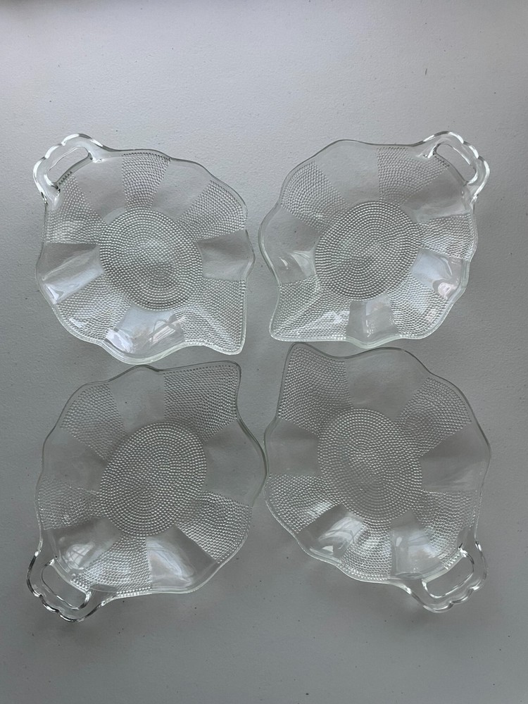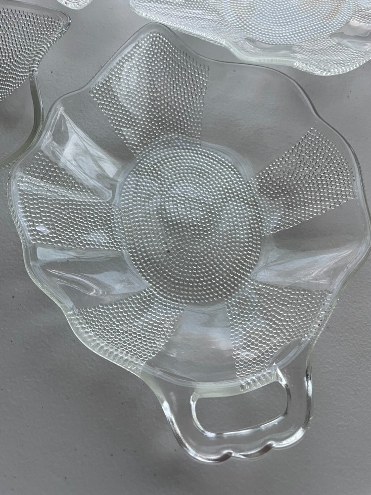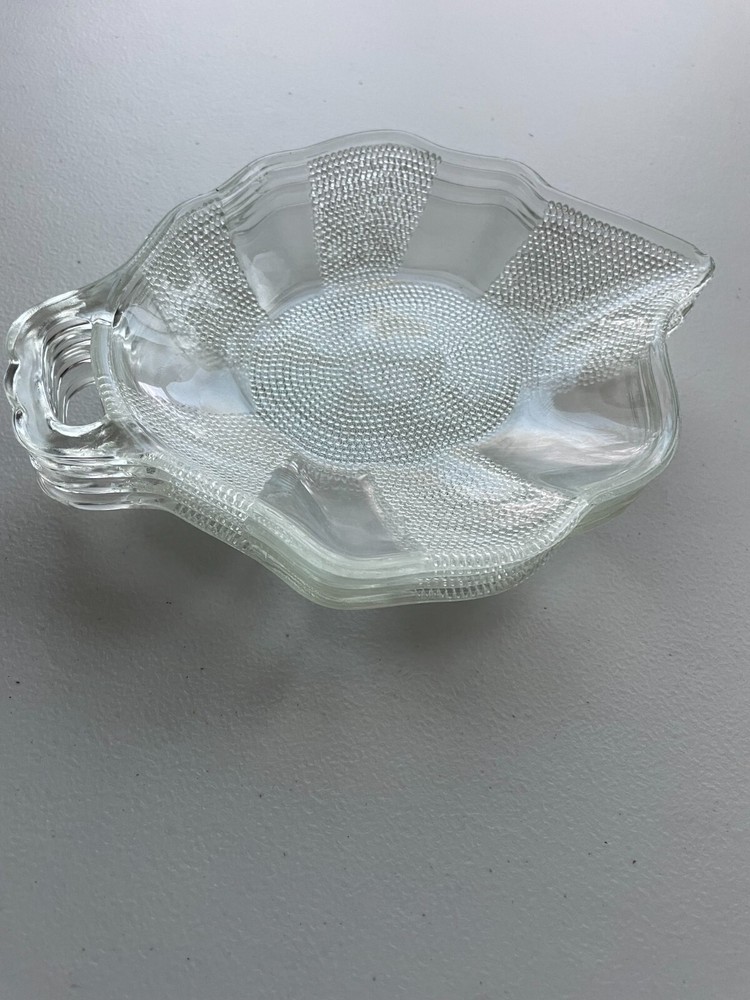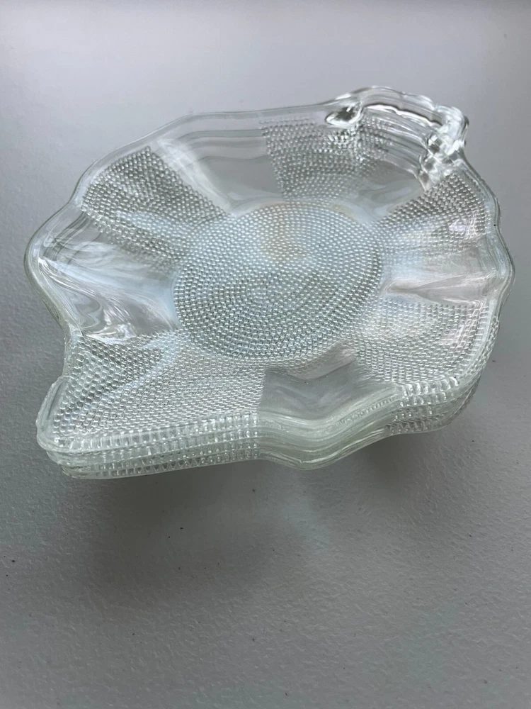 Vintage Pressed Glass Leaf Shaped Antipasti Serving Plates Set of 4 7.5 x 6"...