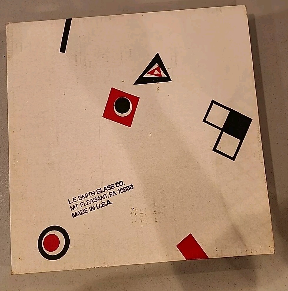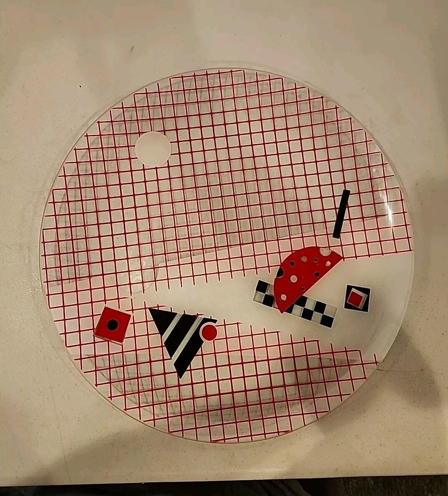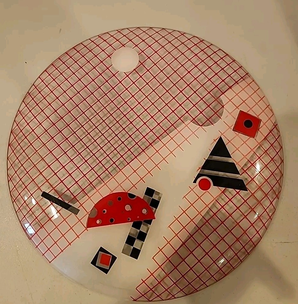 Beautiful abstract art beverage & hors d' oevre platter. Can see design from both sides. 13" round Matches graphic design glasses & old fashion glasses. See my other listings....