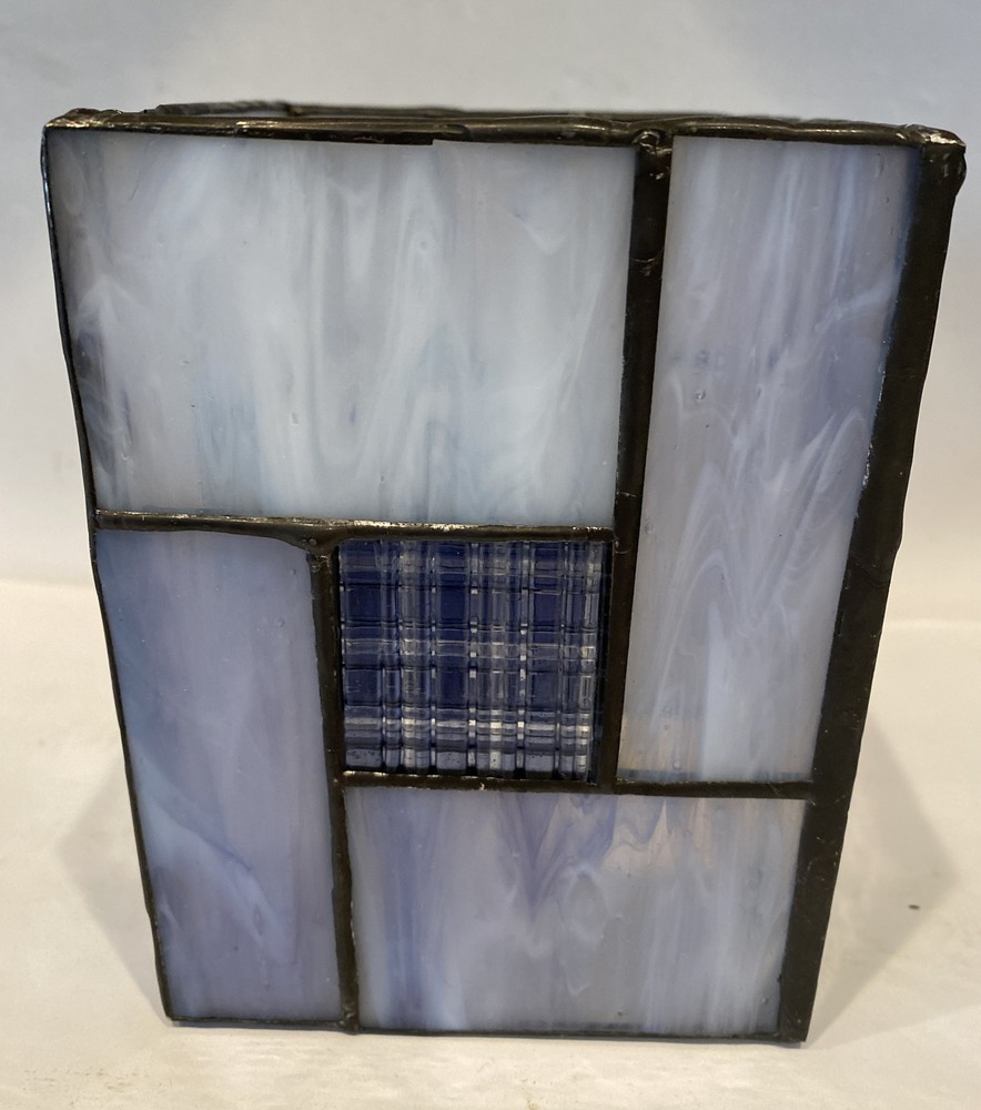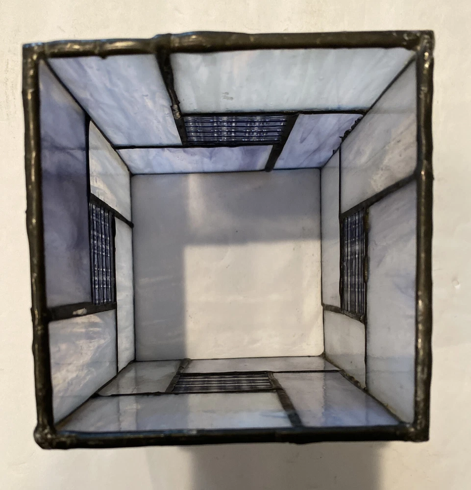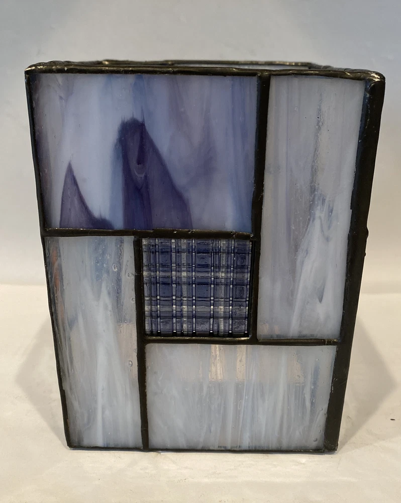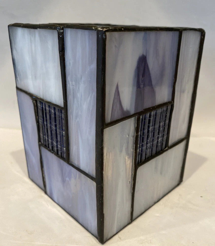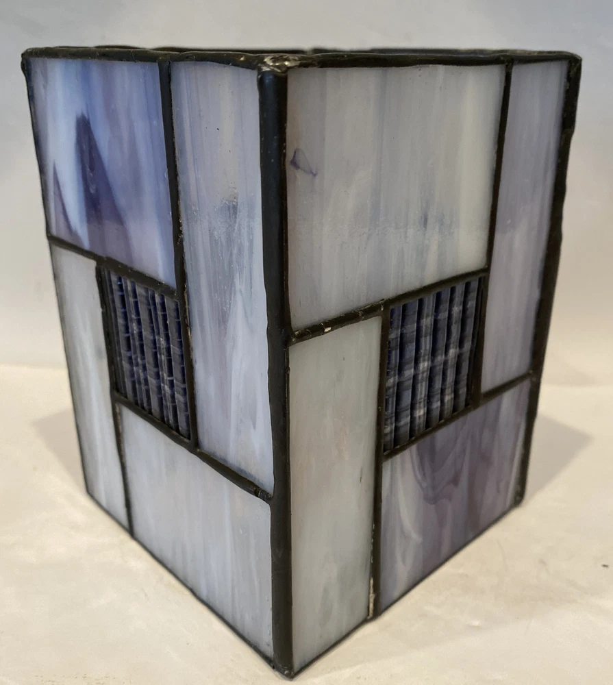 Vintage RARE MCM Studio Art Amber & Beige Stained Glass Votive Square Holder 5.25” Tall. Please see pictures of this absolutely gorgeous item. No cracks or chips. Thanks for visiting !!